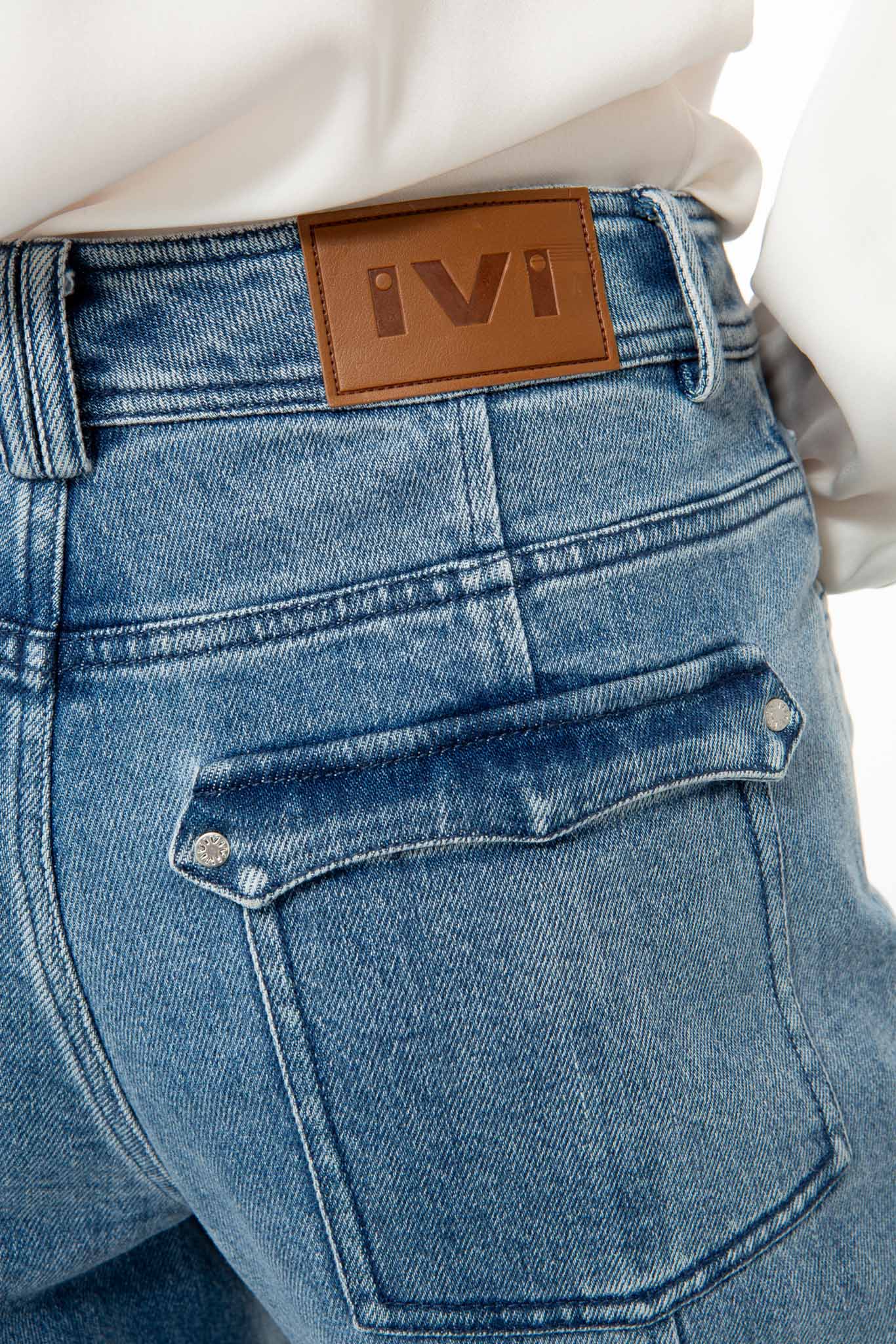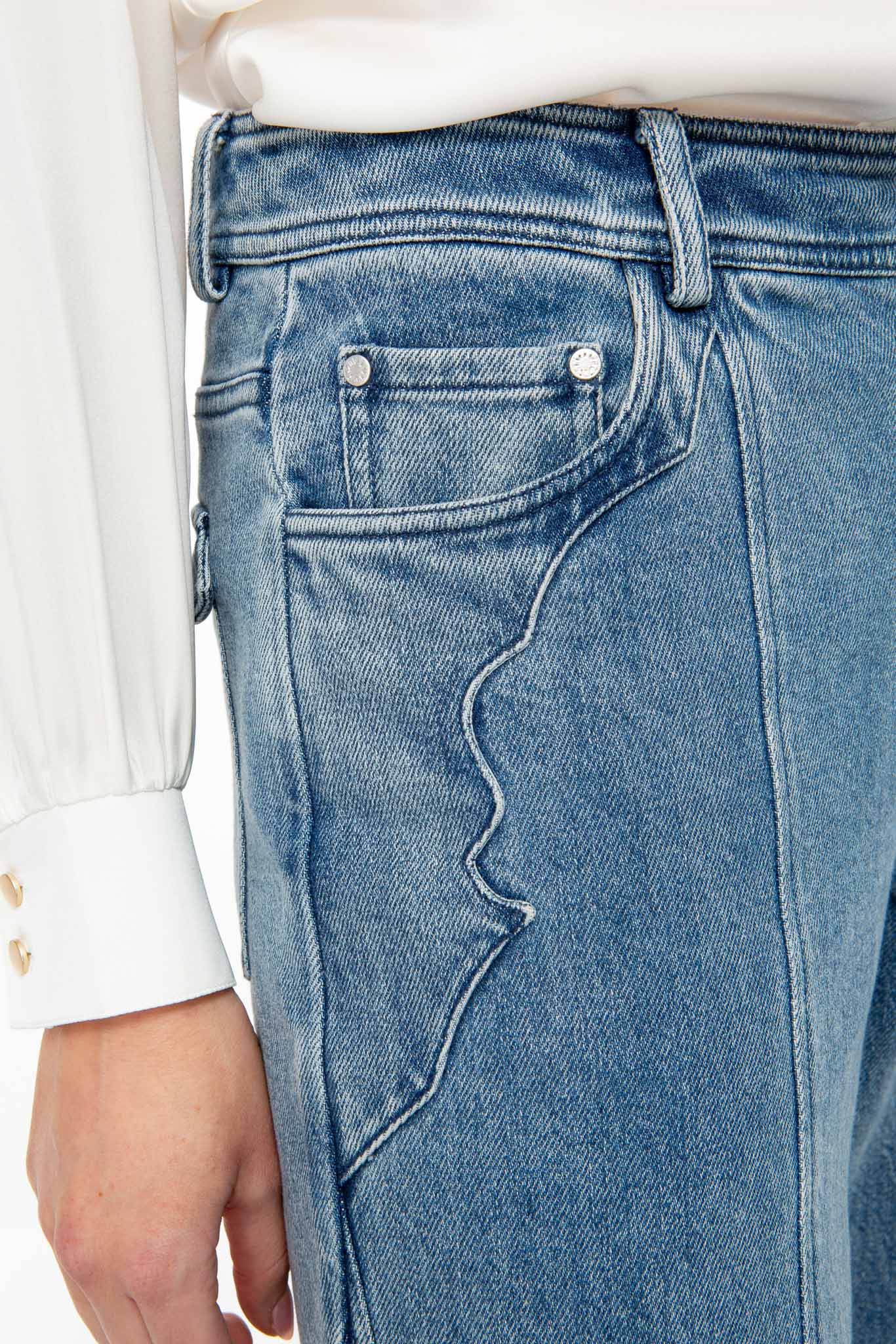 Western-look appliqué on the pocket opening and double-stitched decorative denim seams set special accents. Silver-colored IVI metal trimmings lend a signature finish.