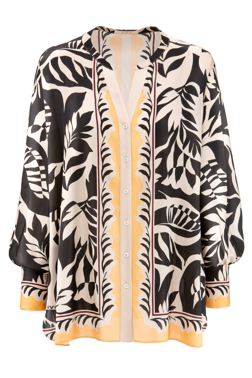 Our tunic as a blouse version with a V-neck and full-length button placket.