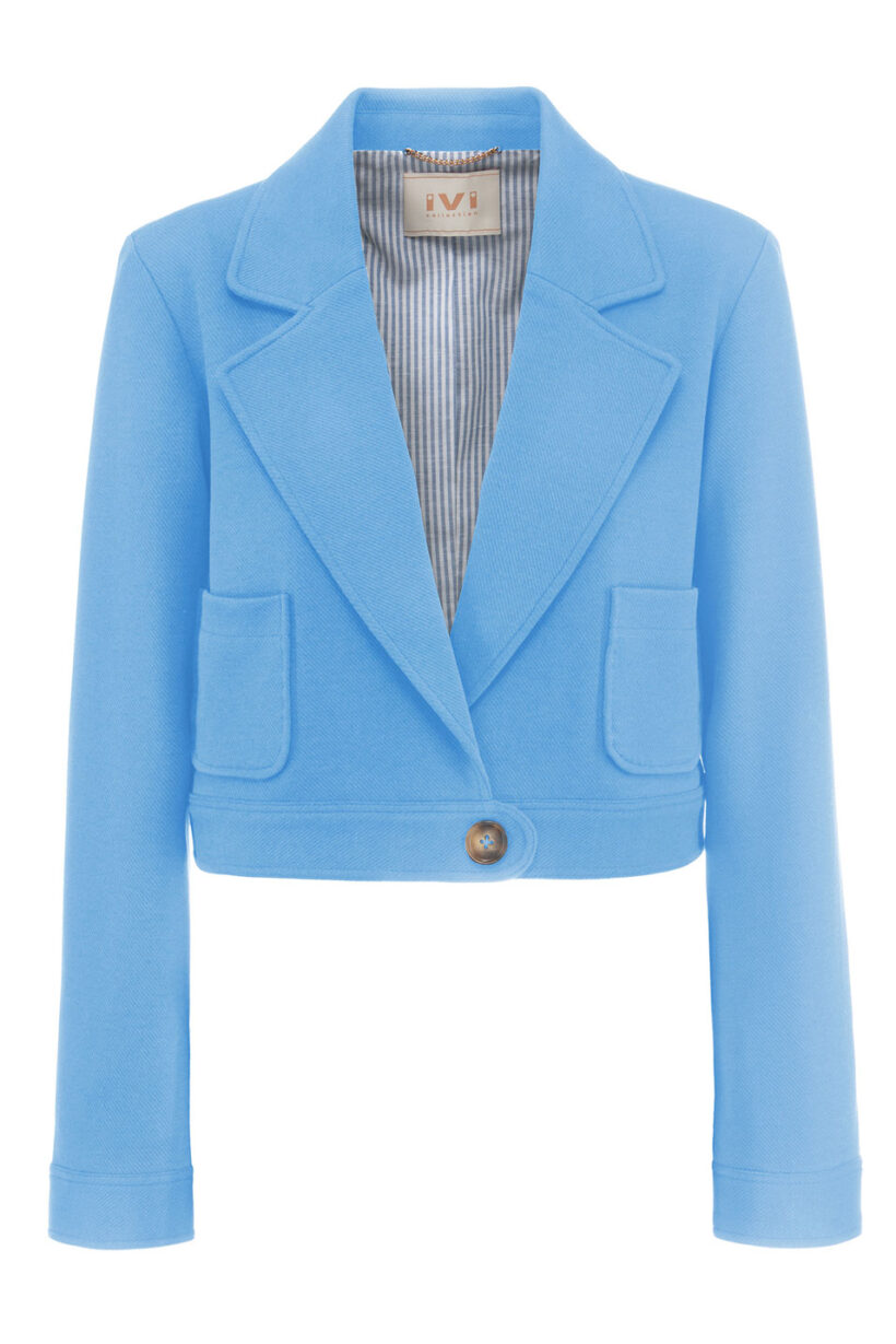 Cropped blazer made from textured heavy jersey with a wide lapel and patch pockets.