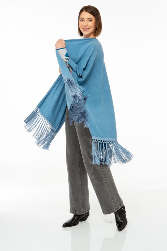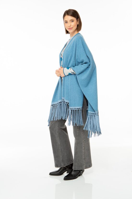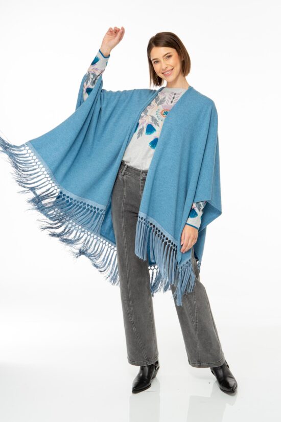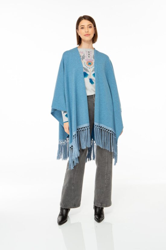 Casual oversized knitted cape made from a soft wool and cashmere blend.