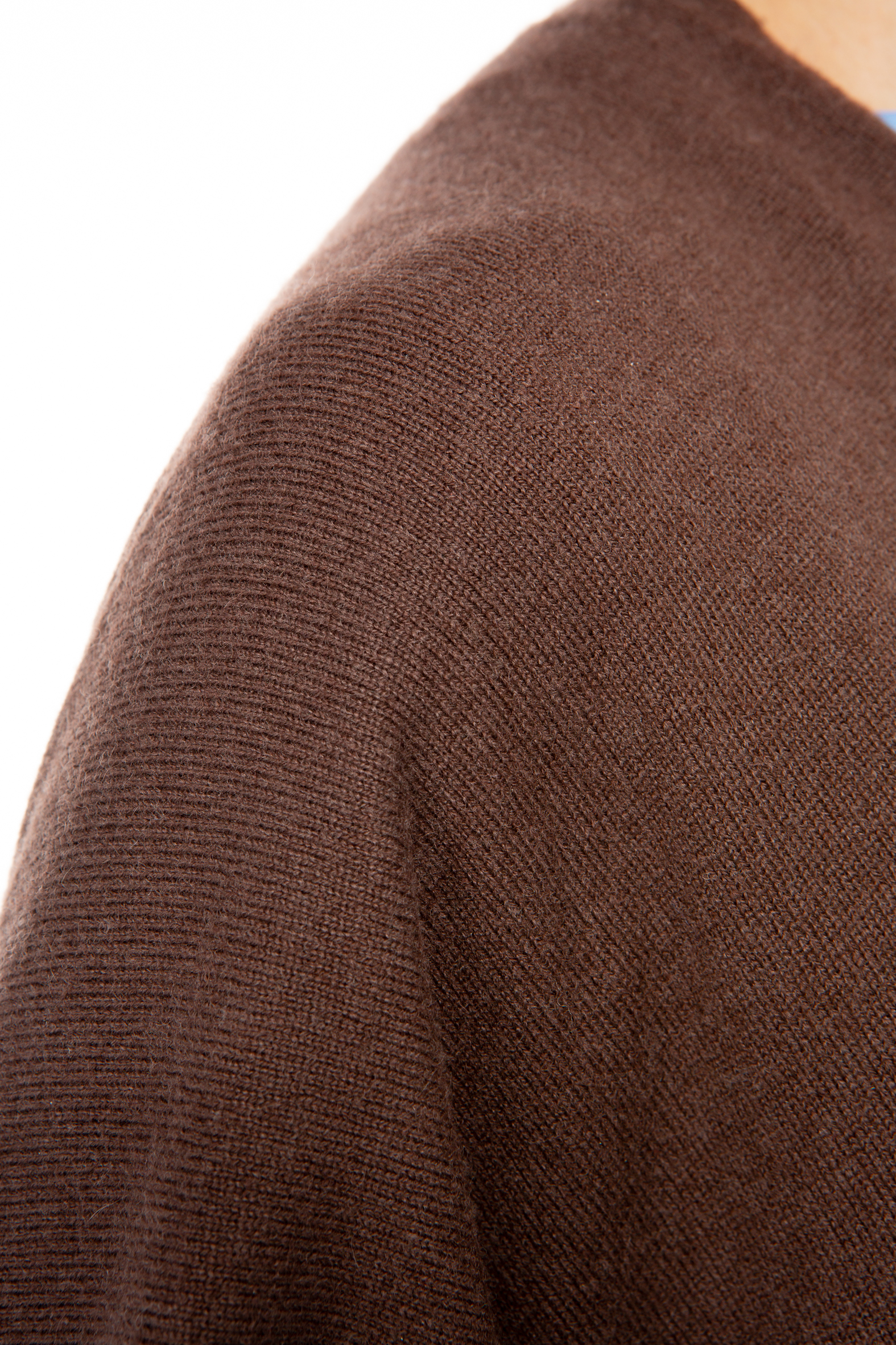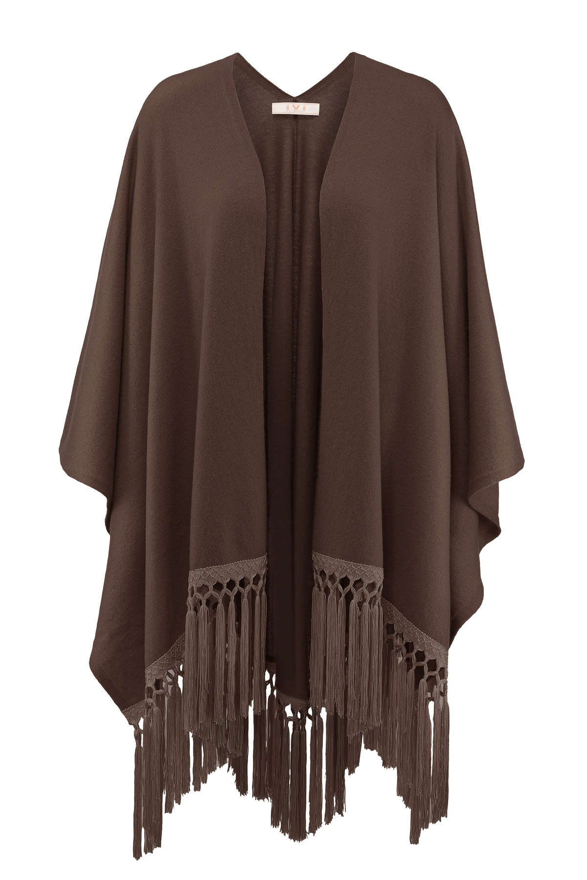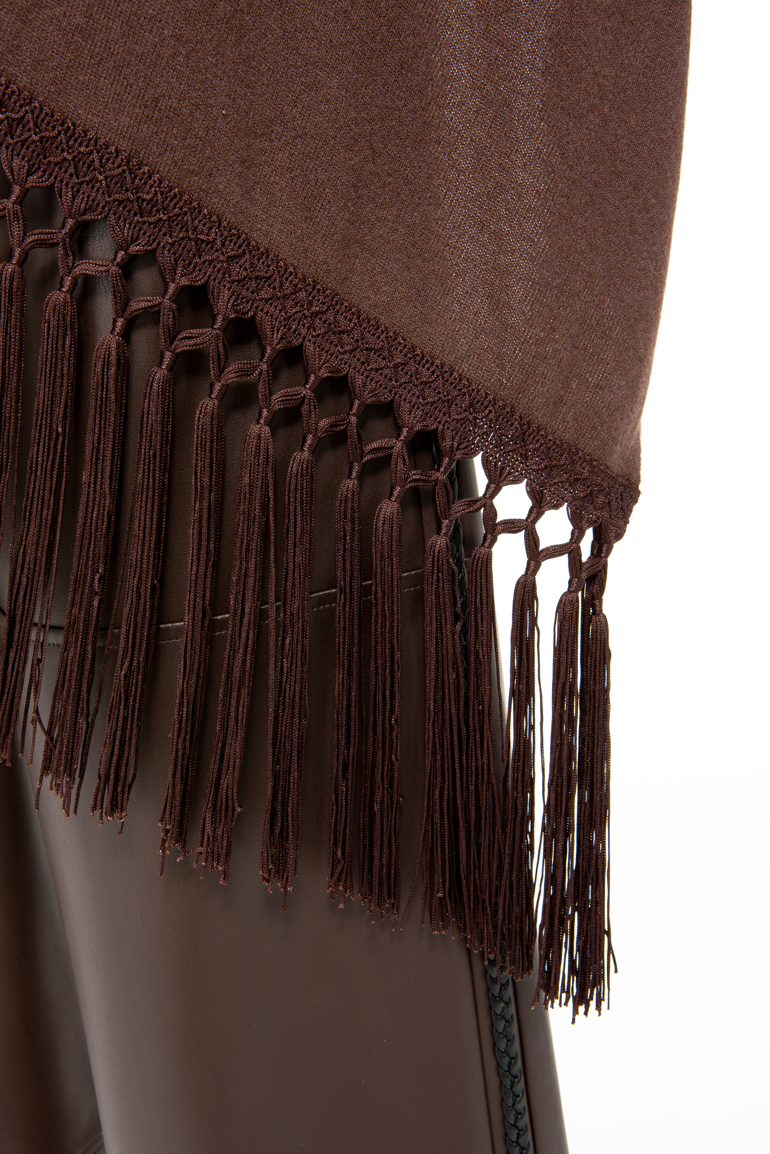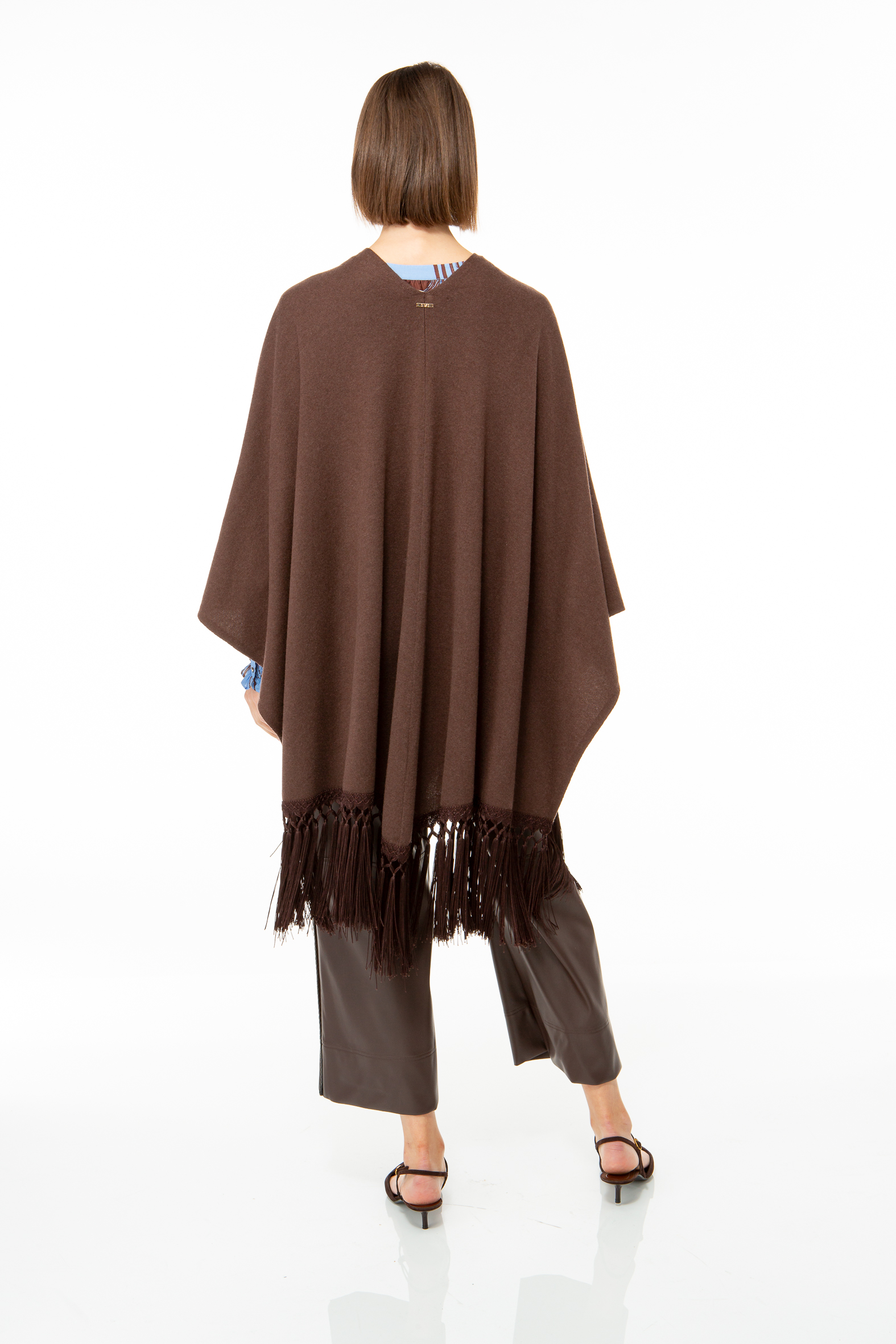 Casual cape made of soft merino knitwear with an elegant fringed border at the hem.