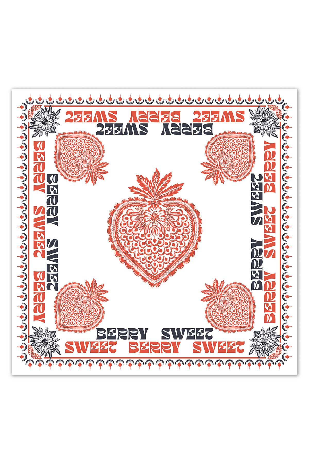 Square scarf made from high-quality silk twill. The sweet berry print in contrasting colors is a real eye-catcher.