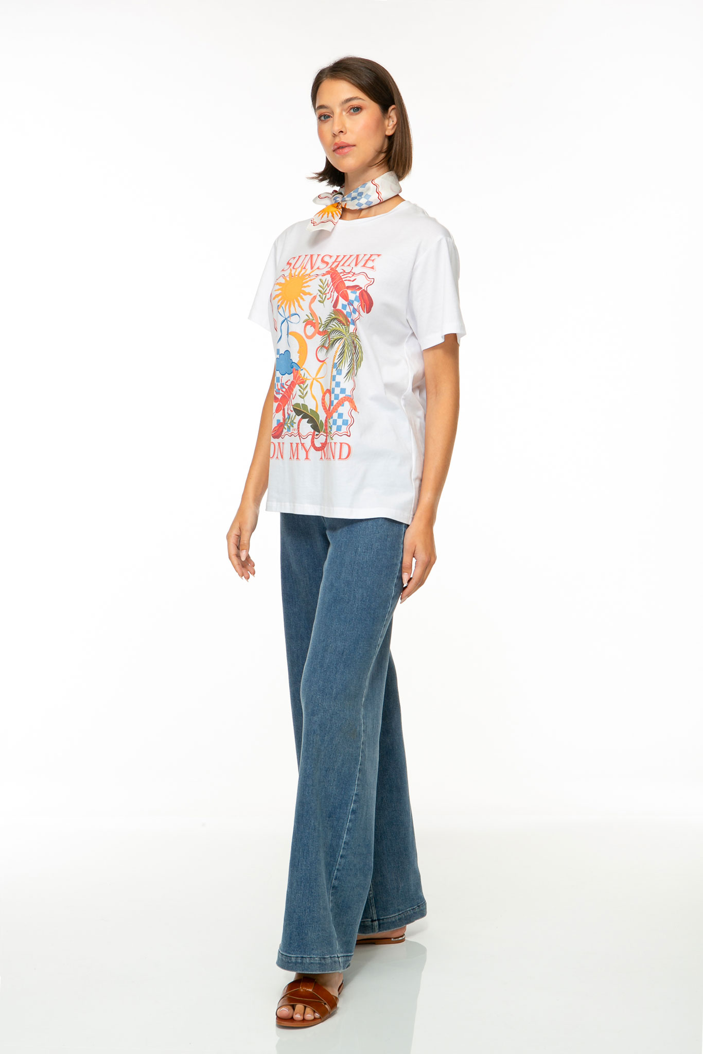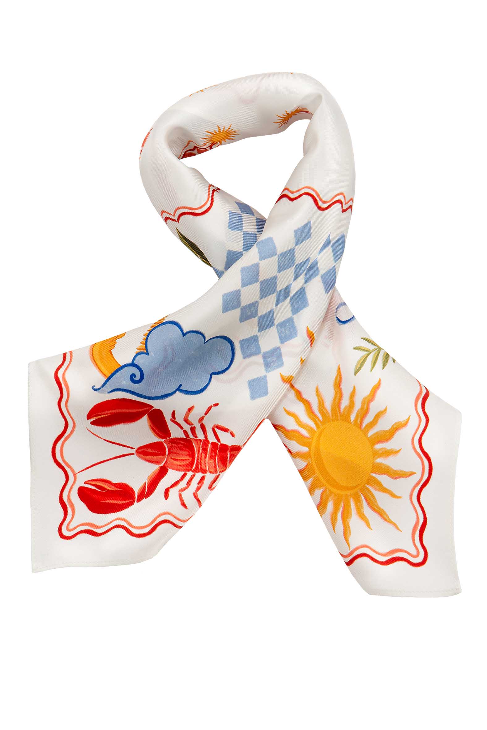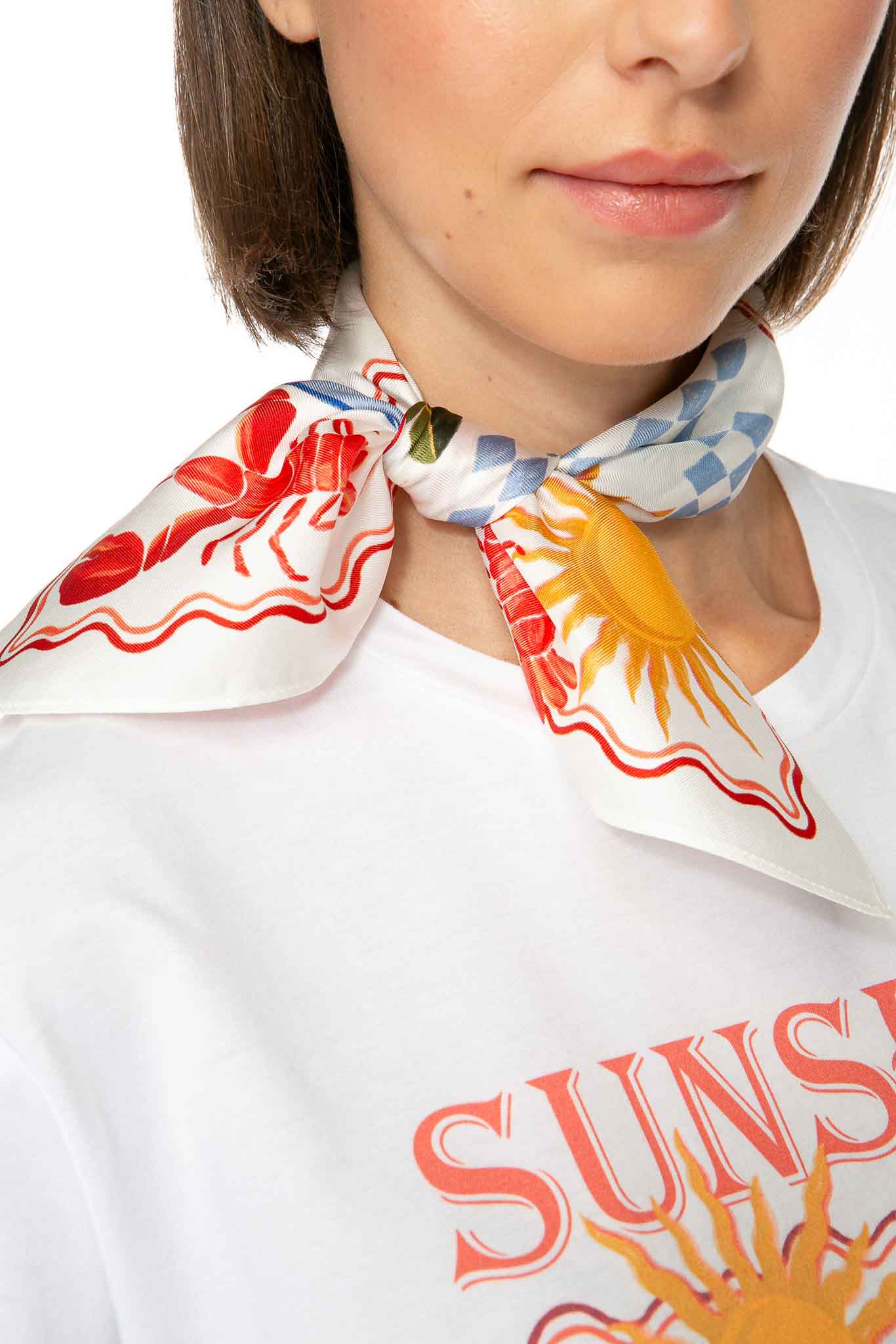 Square scarf made from high-quality silk twill. The detailed print with summery motifs is a colorful eye-catcher.