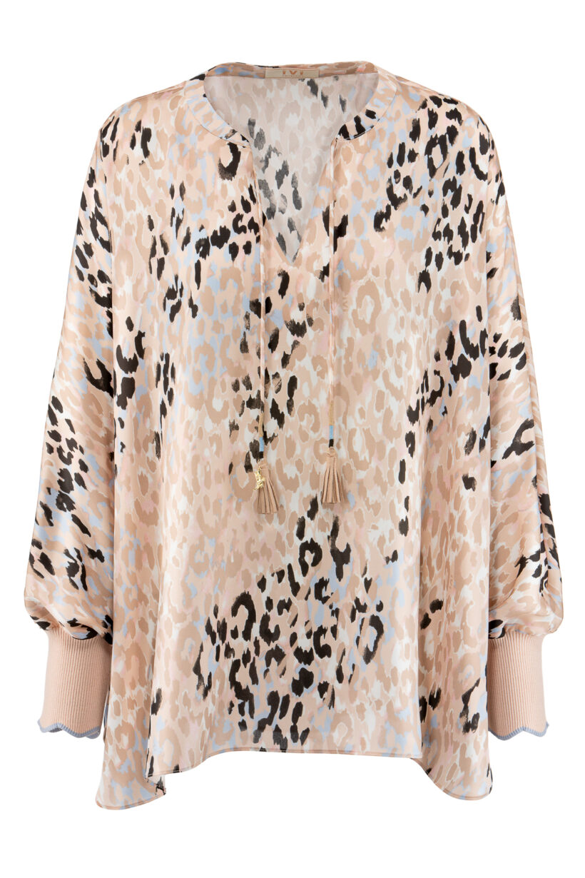 Our tunic in the usual casual oversized fit made from a high-quality viscose and silk blend with a leopard print.