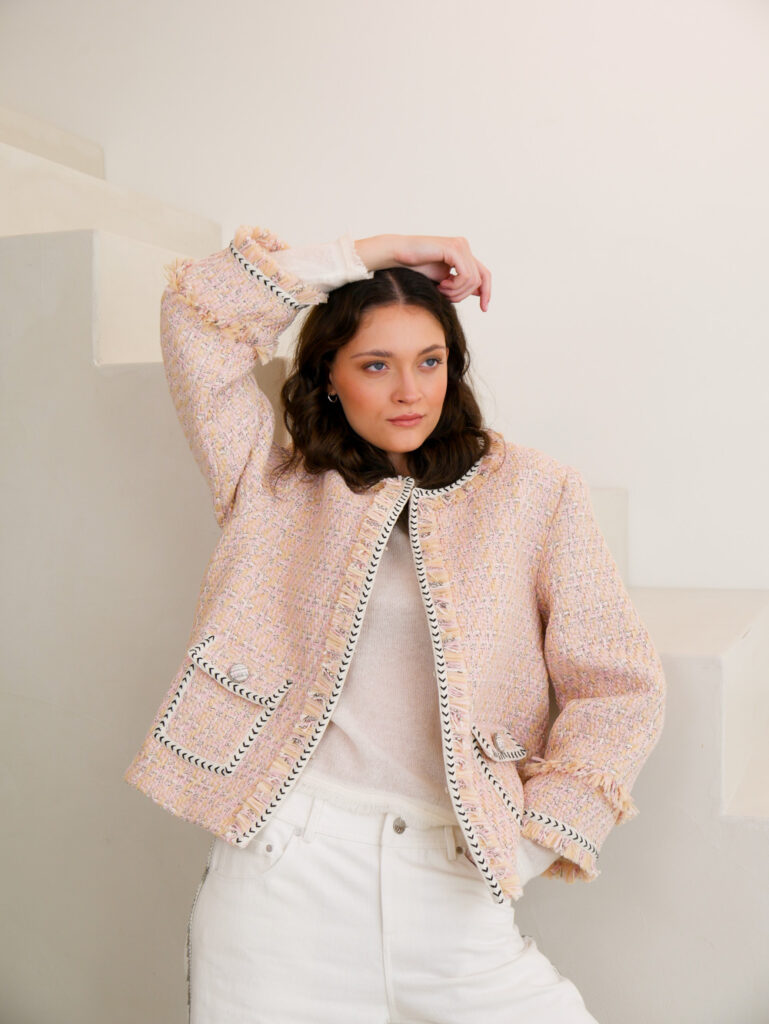 Die Resort26 Kollektion bringt den ikonischen Pariser Look direkt in deinen Kleiderschrank: frisch, selbstbewusst und immer mit einem Hauch von „je-ne-sais-quoi“. Paris spiegelt sich in jedem Detail wider – zarte Stickereien, dezente Strasssteine, dekorative Bandverzierungen und Spitze verleihen jedem Look das gewisse Etwas, sind aber dennoch alltagstauglich und lässig.
