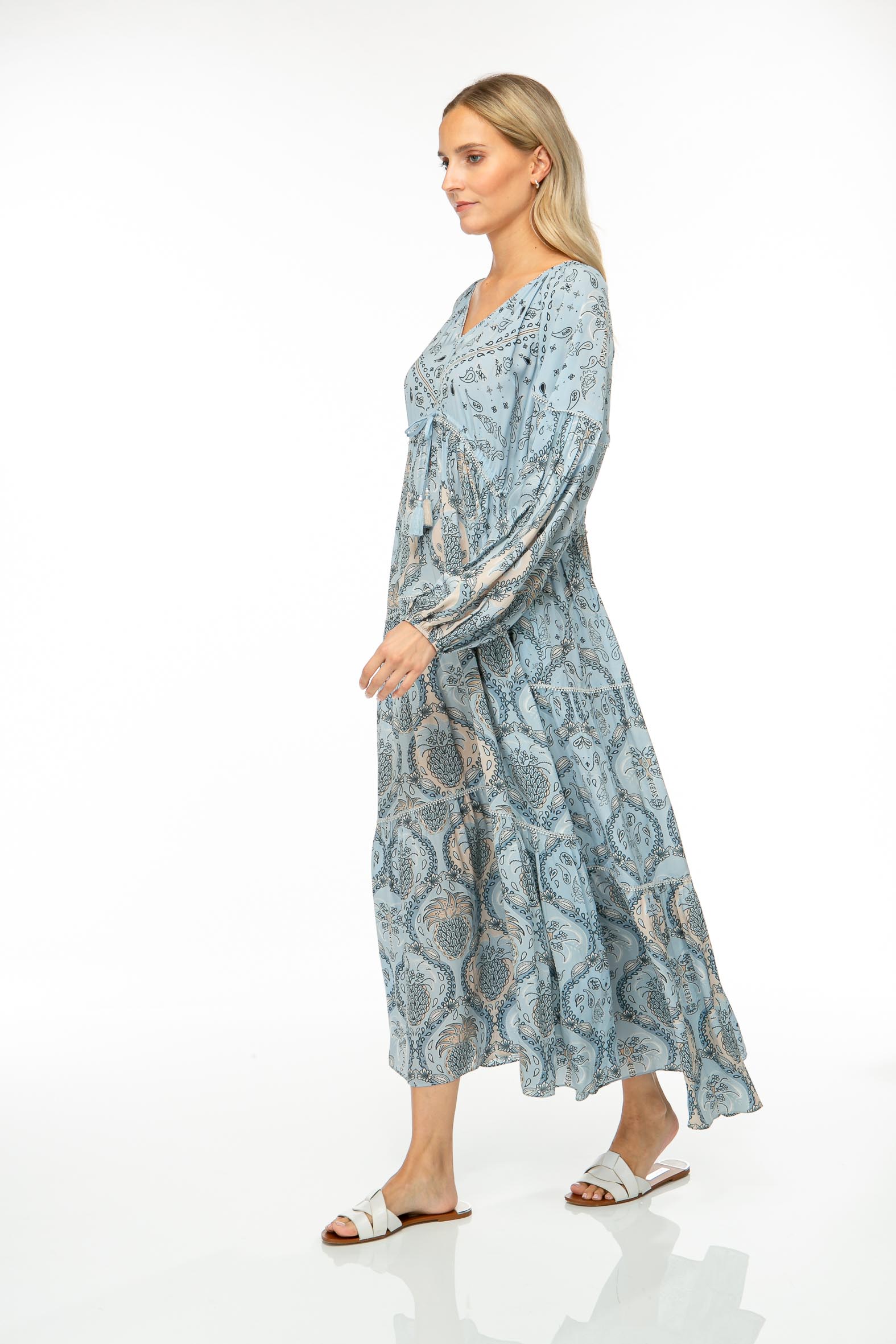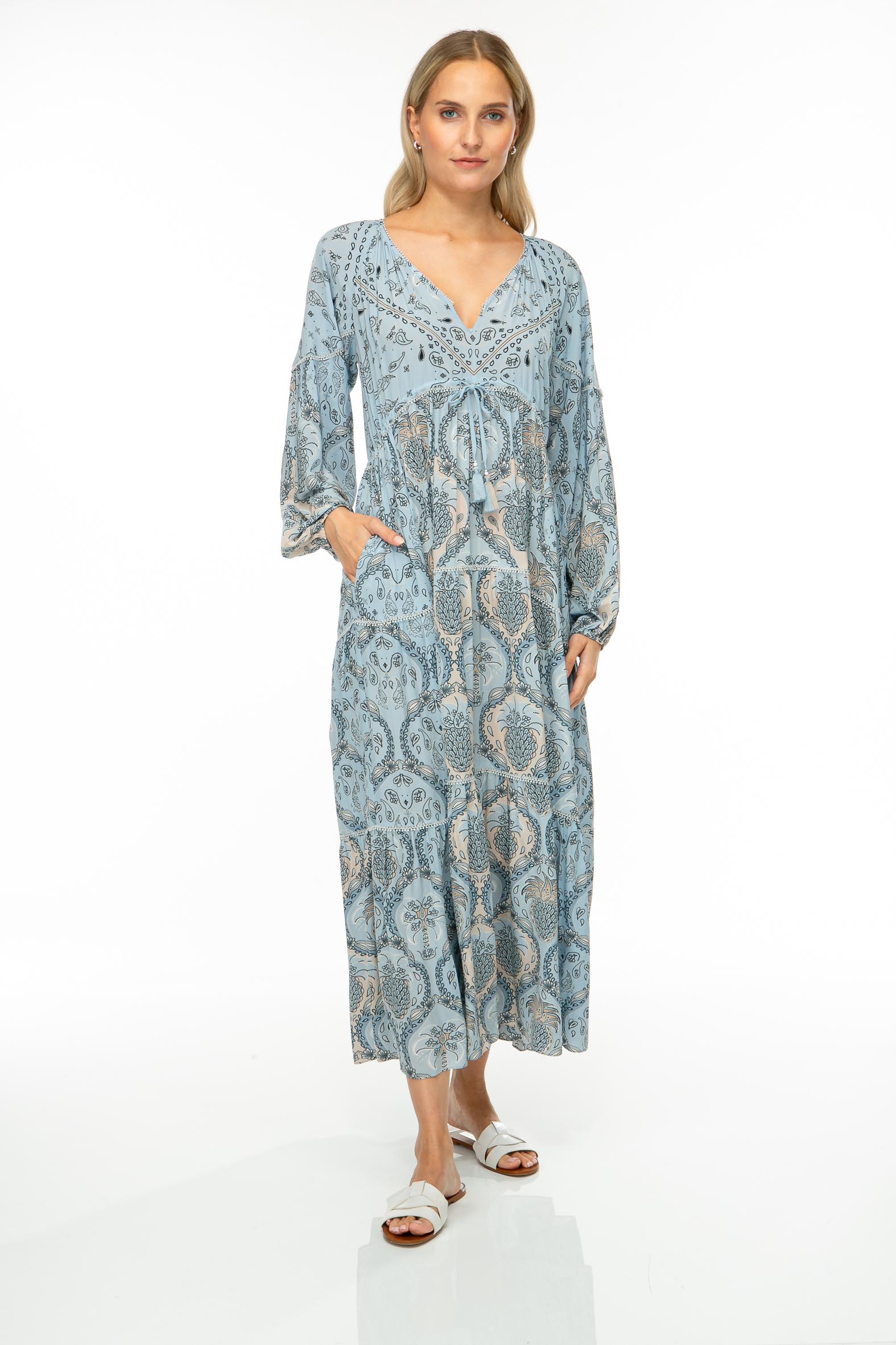 Langes Sommerkleid aus zartem Viskose-Chiffon mit filigranem Paisley Print.