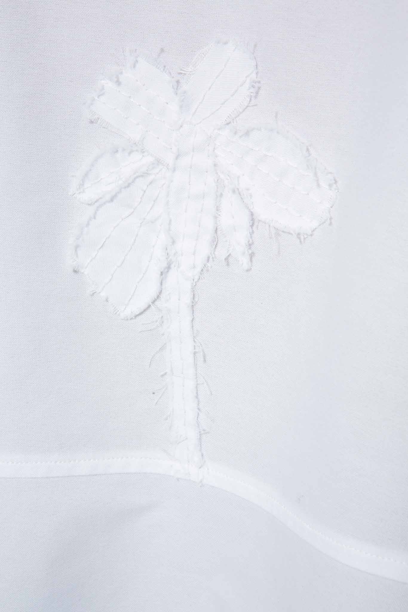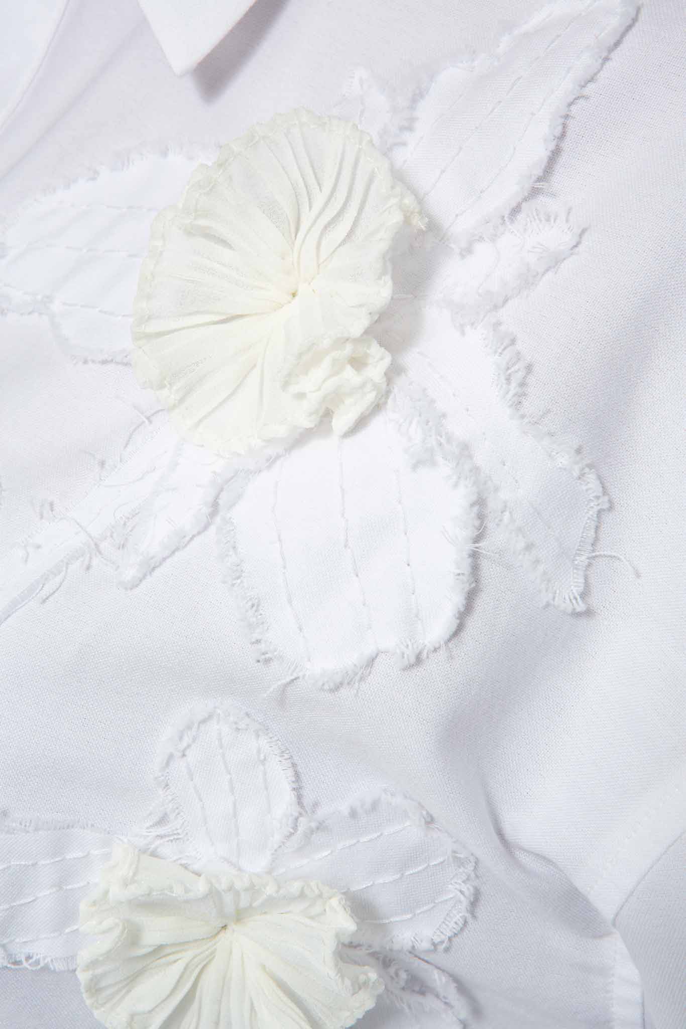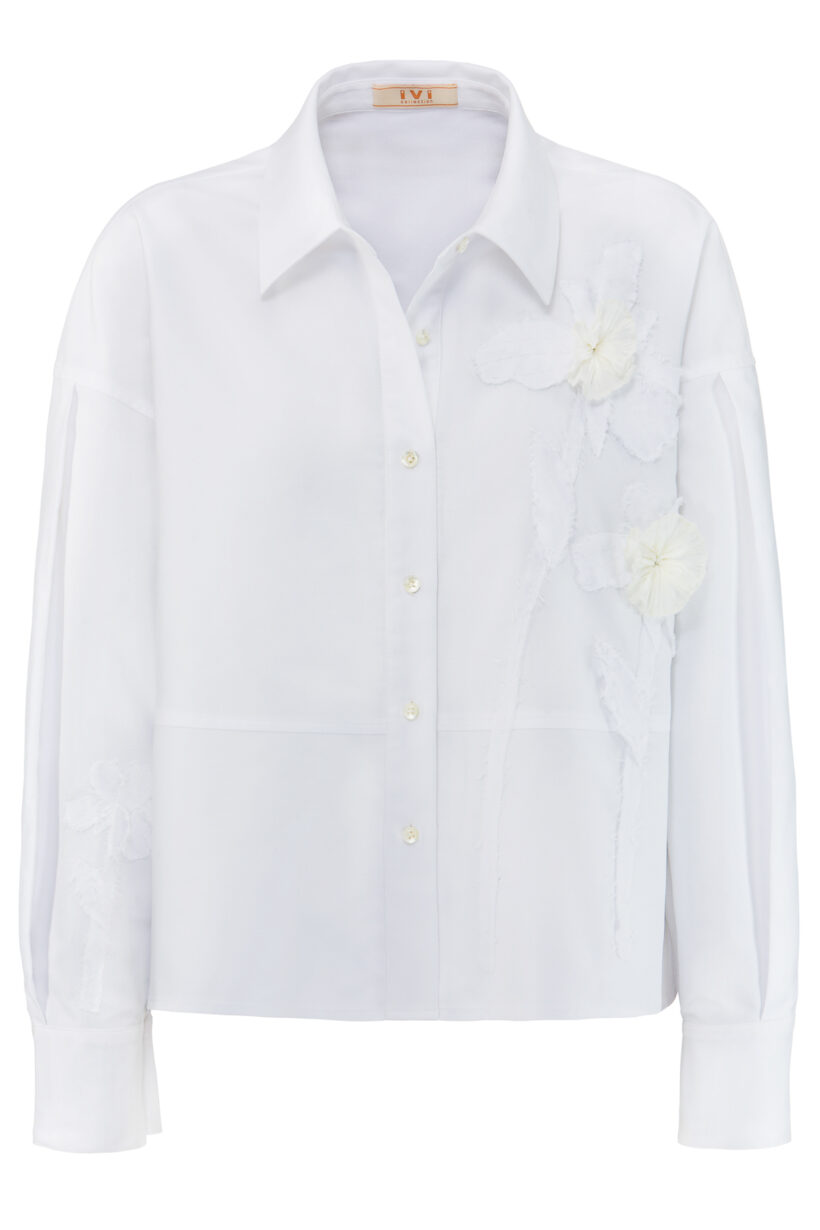 Verkürzte Hemdbluse aus klassischem Baumwoll-Popeline mit Blüten Applikationen.