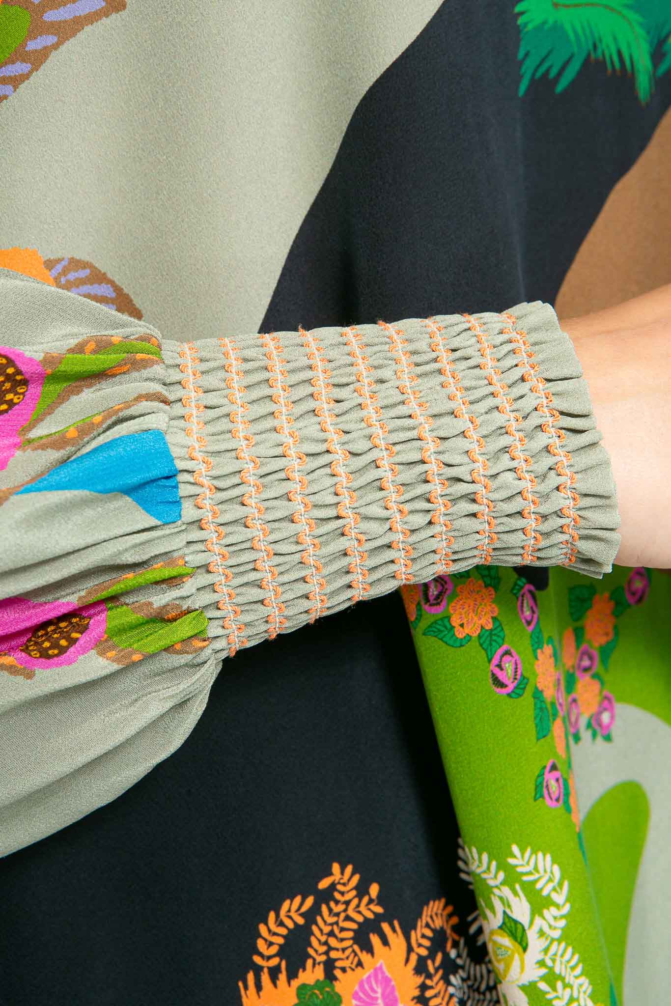 Der farbenfrohe Print mit feinen Details gibt dem Style eine formschöne Betonung.