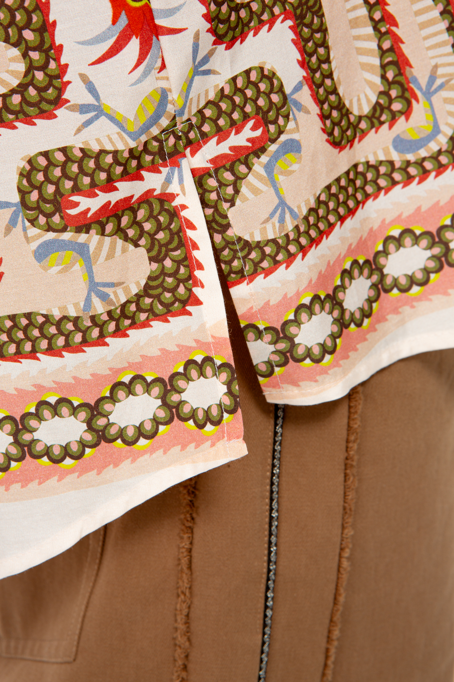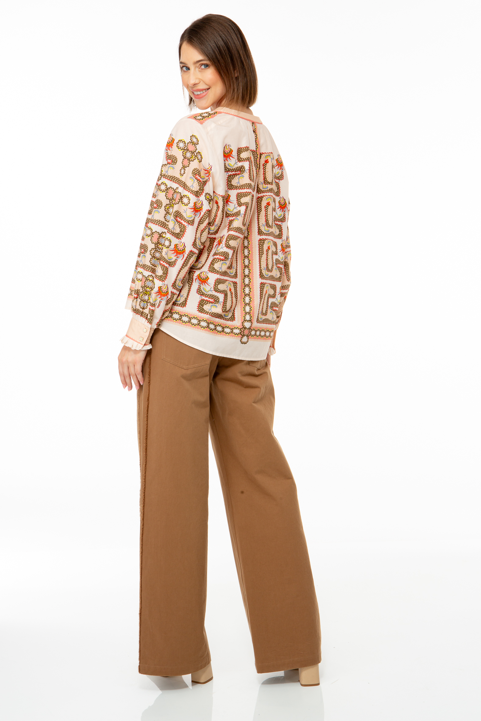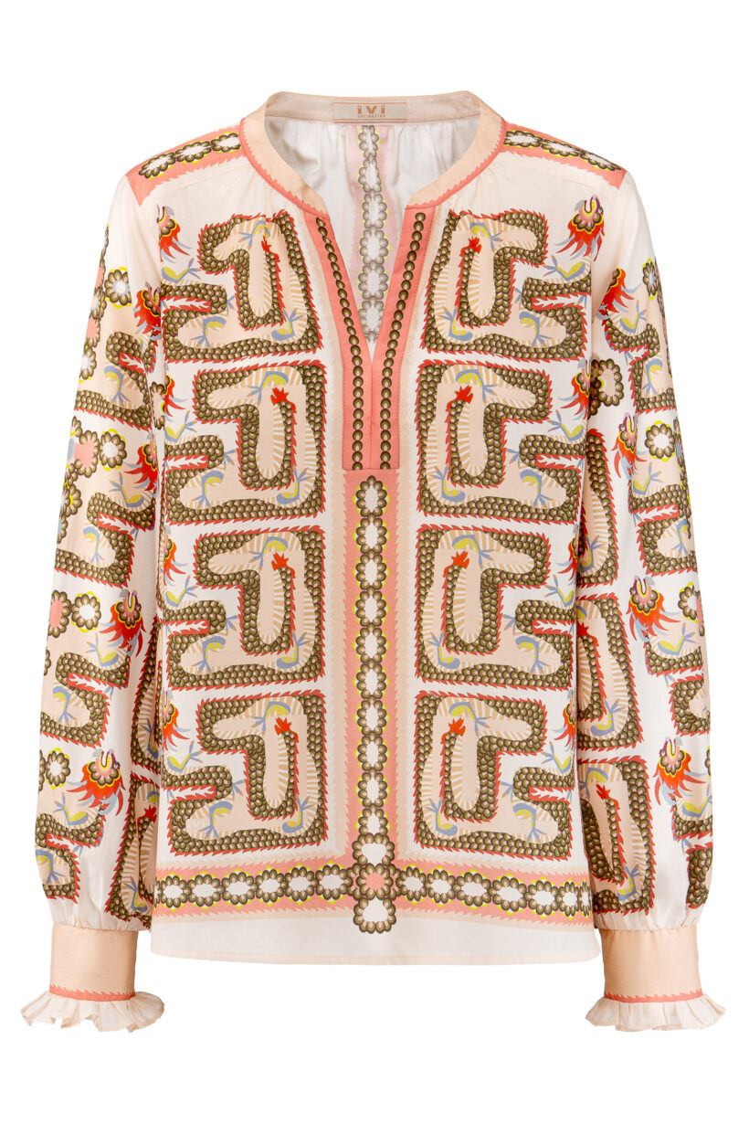 Feminine Bluse aus einem feinem Baumwoll-Seiden-Stoff mit graphischem Placement Print.
