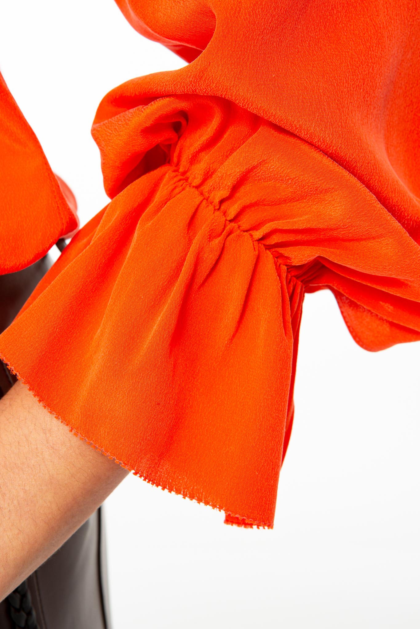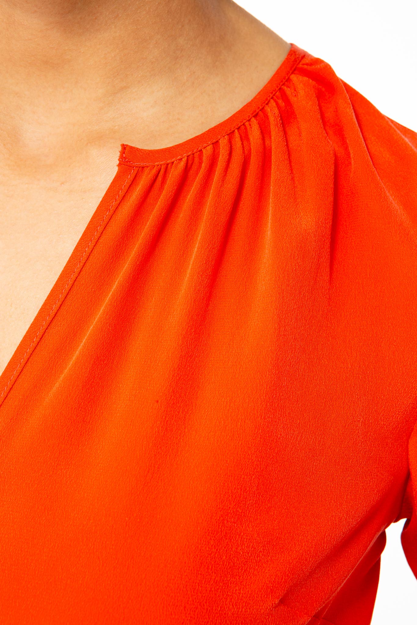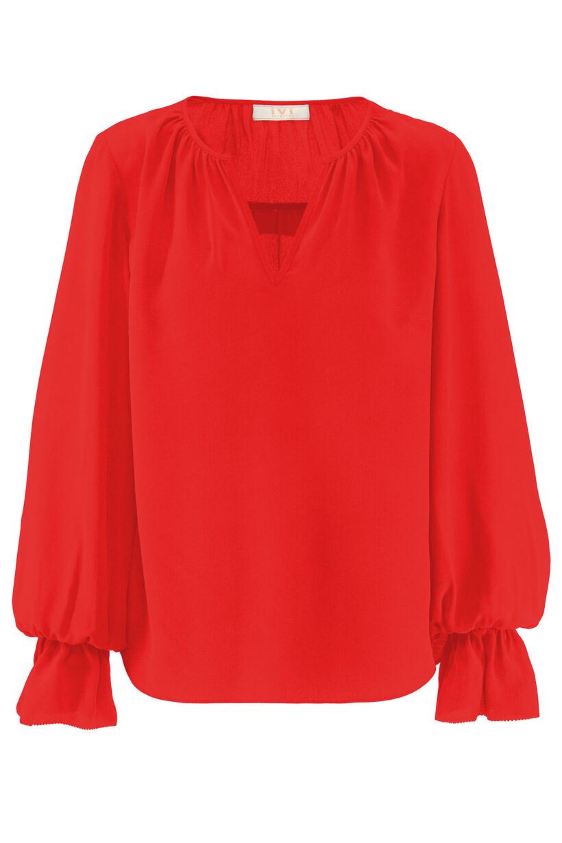 Feminine Seidenbluse mit rückwärtiger Zierrüsche und leichtem A-Shape.