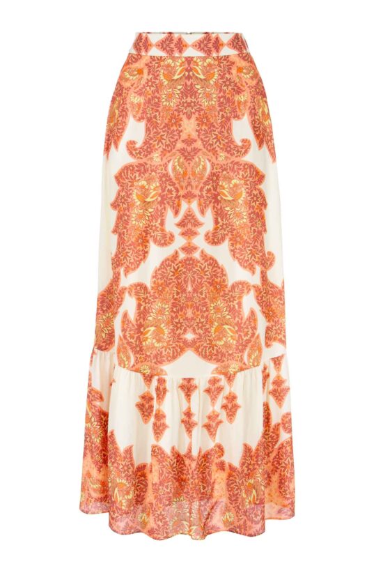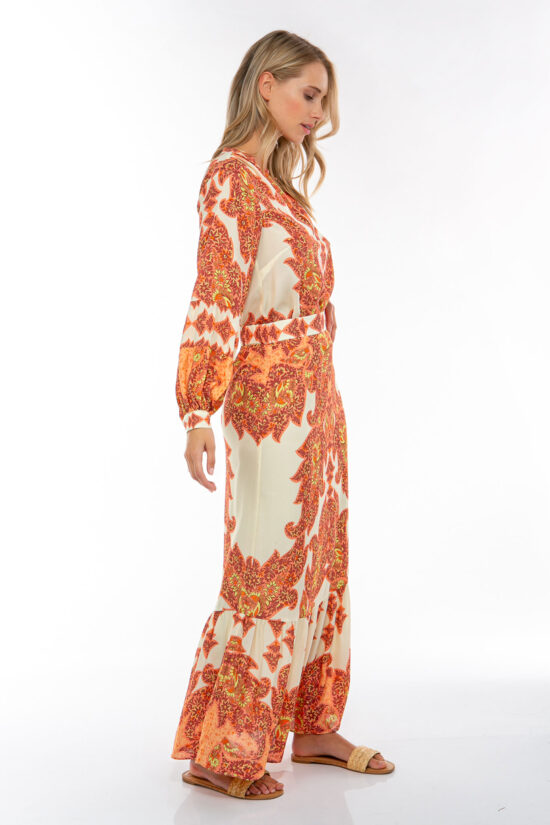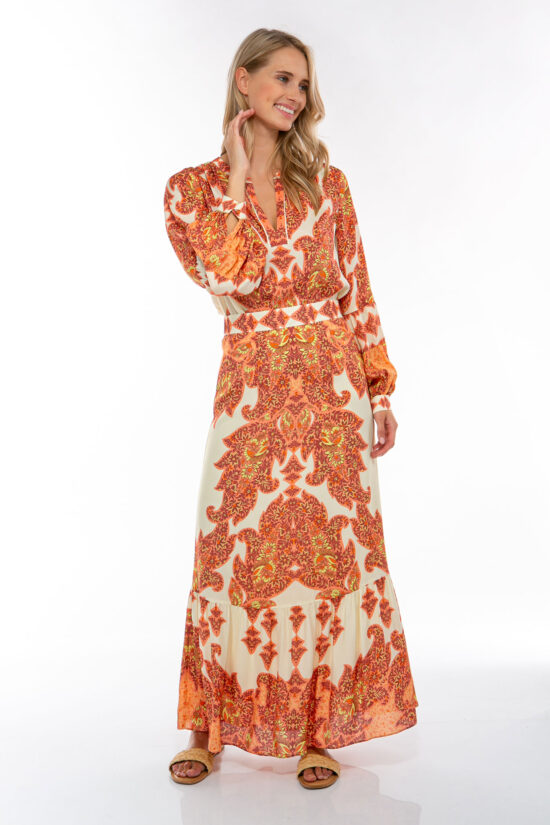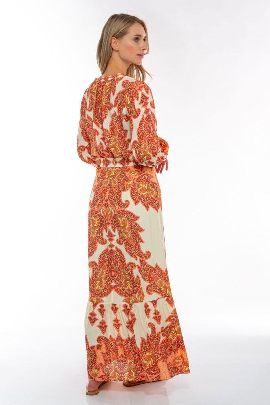 Langes Sommerkleid aus zartem Viskose-Chiffon mit leichter Transparenz und Paisleymuster-Patch.