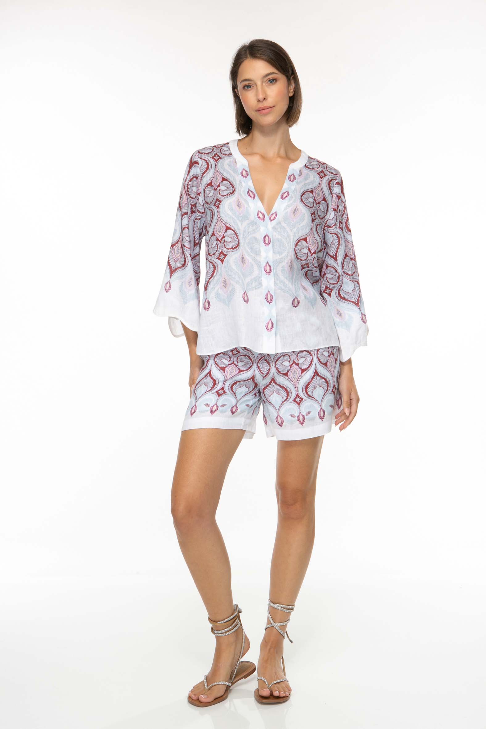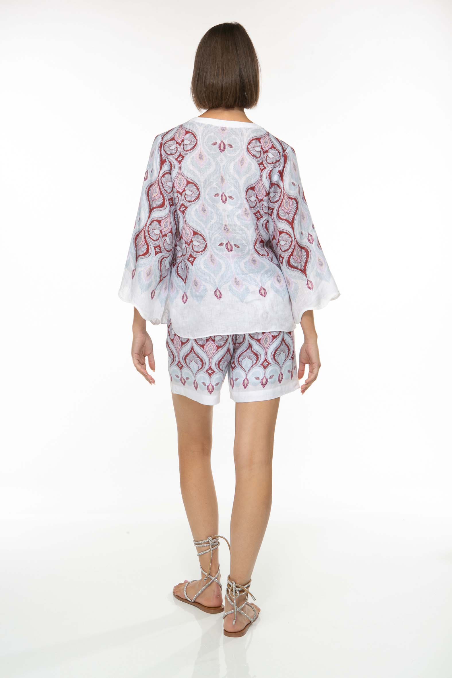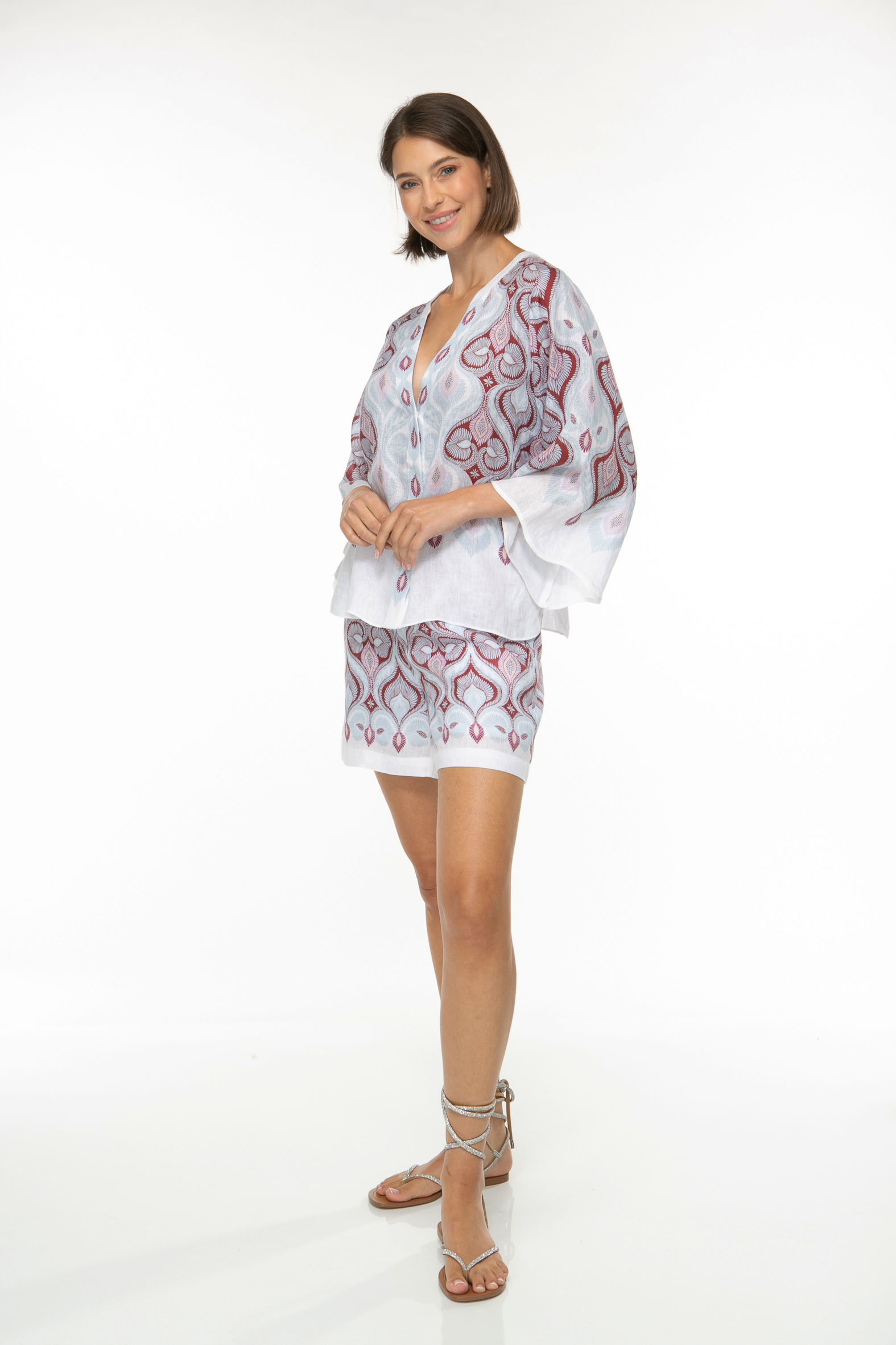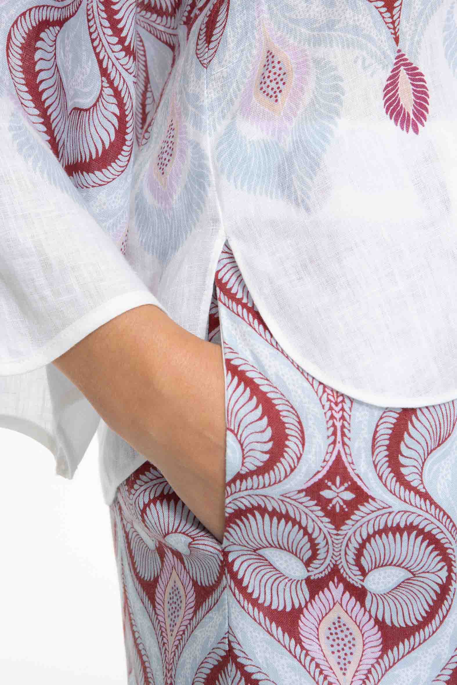 Kurze Shorts aus Leinen mit Bundfalte und einem platzierten Print in edlen Farbnuancen.