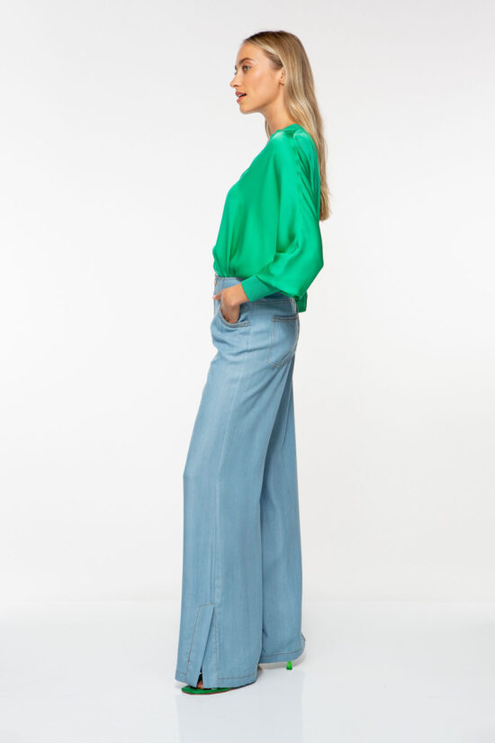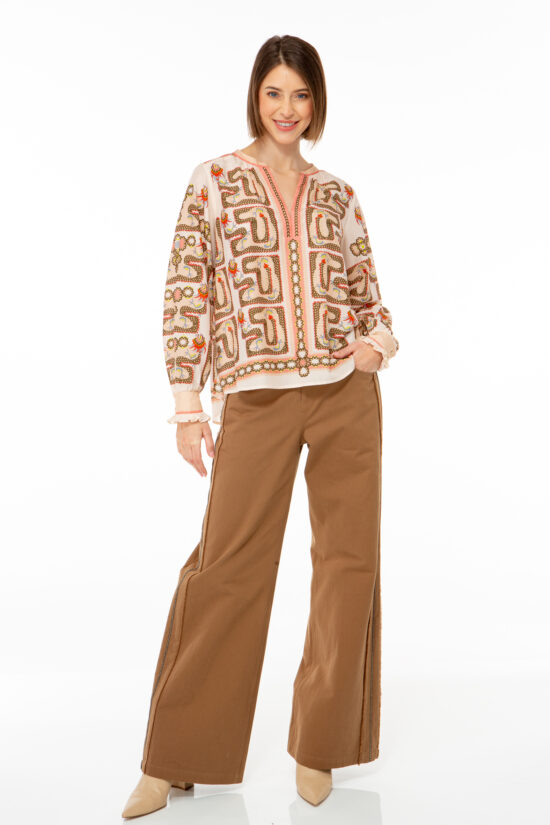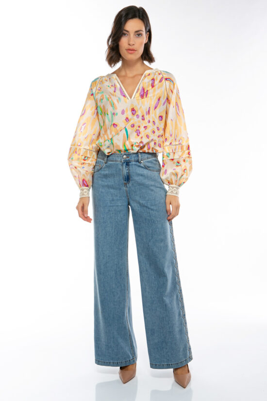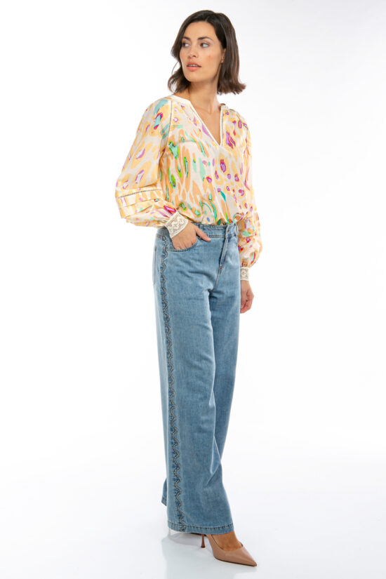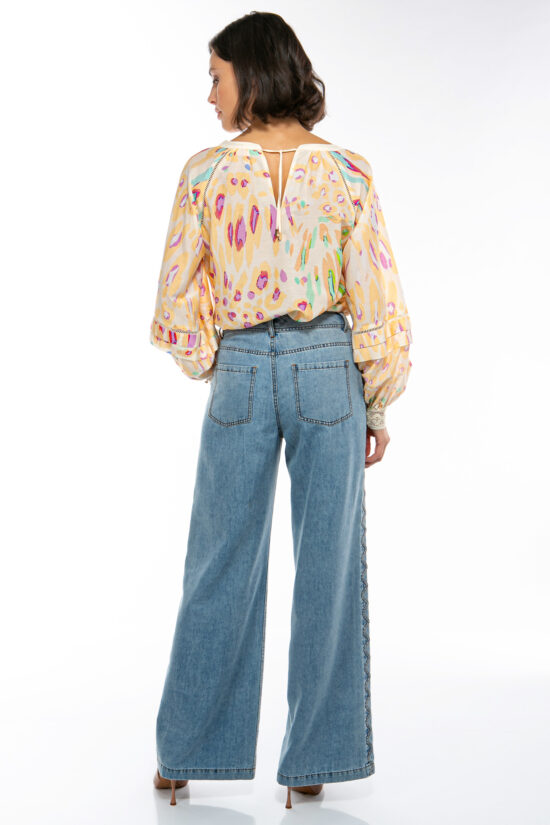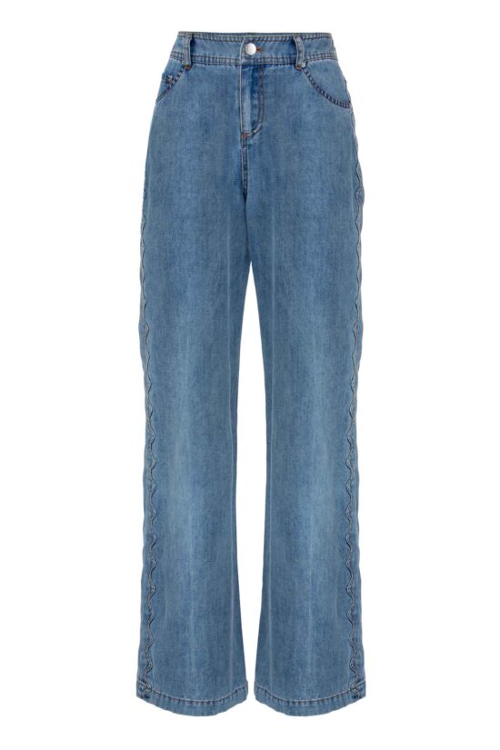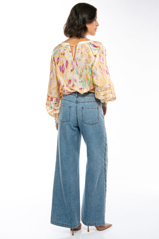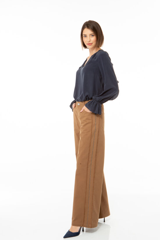 - Seitennaht mit Fransenkante und Lurex-Zierlitze