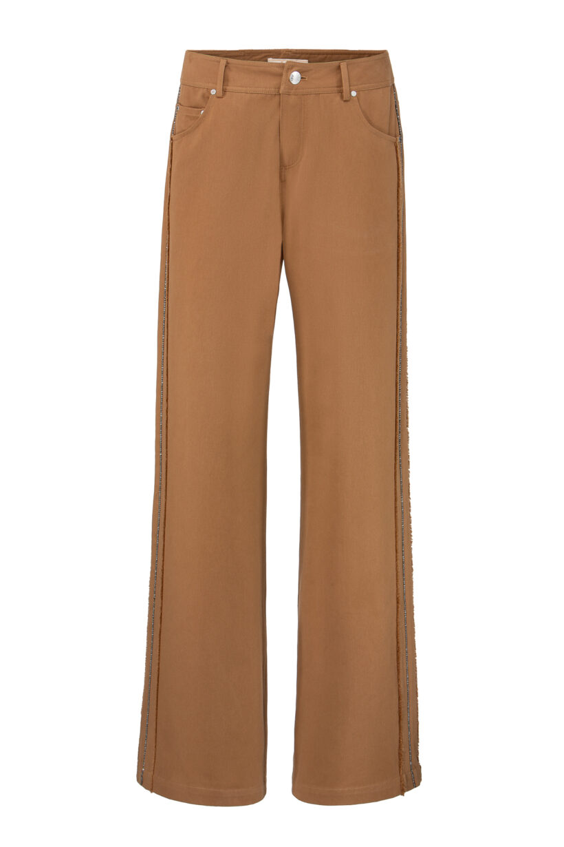 Der seitlich eingesetzte Streifen mit Fransenkante und Lurex-Zierlitze gibt dem Style ein edel lässiges Finish.
