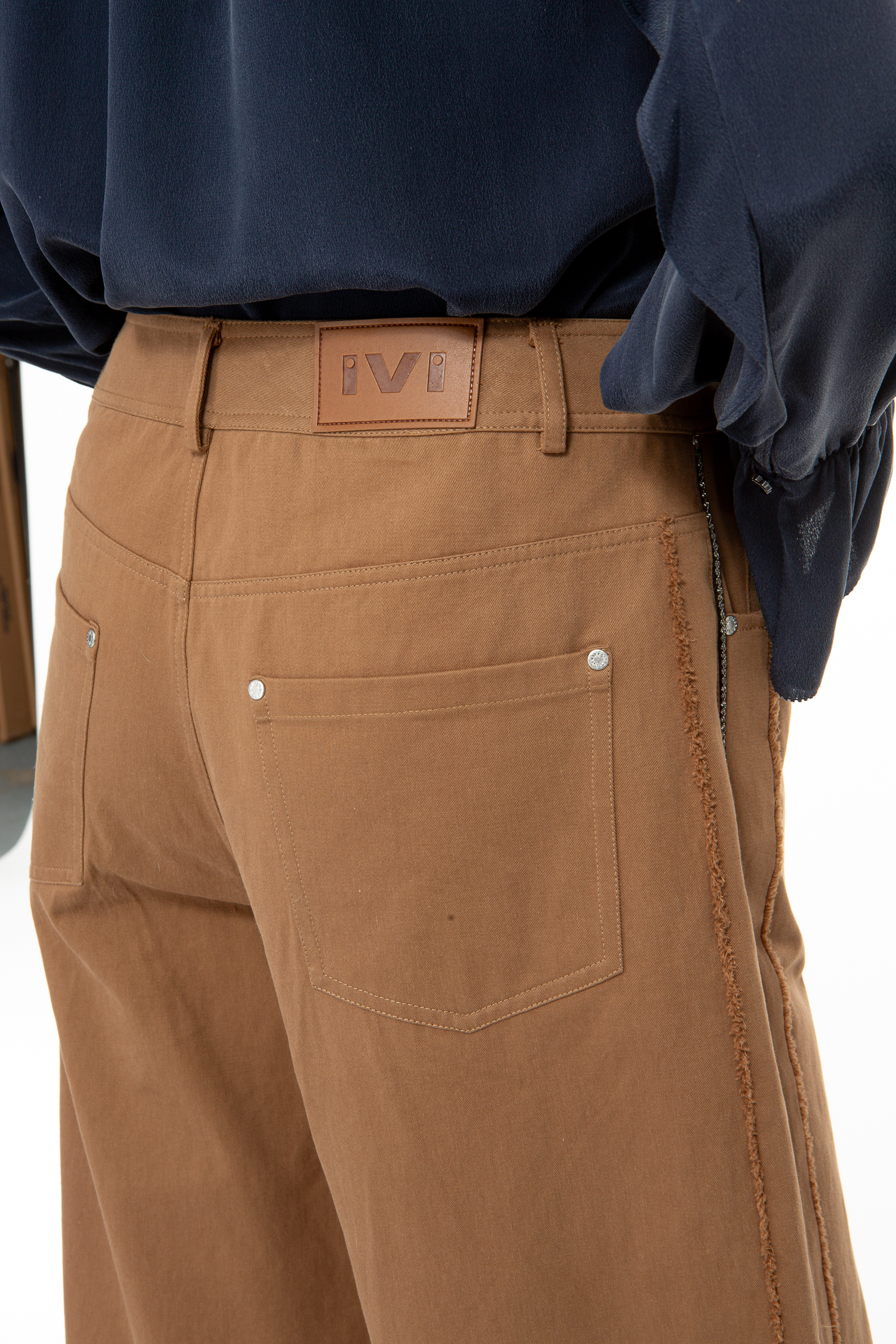 - Seitennaht mit Fransenkante und Lurex-Zierlitze