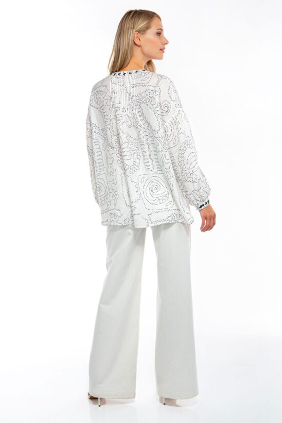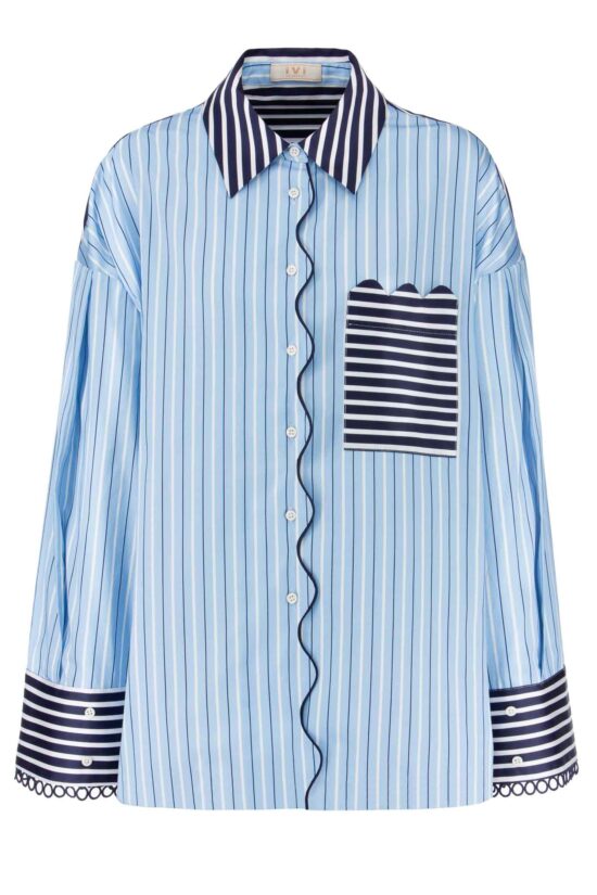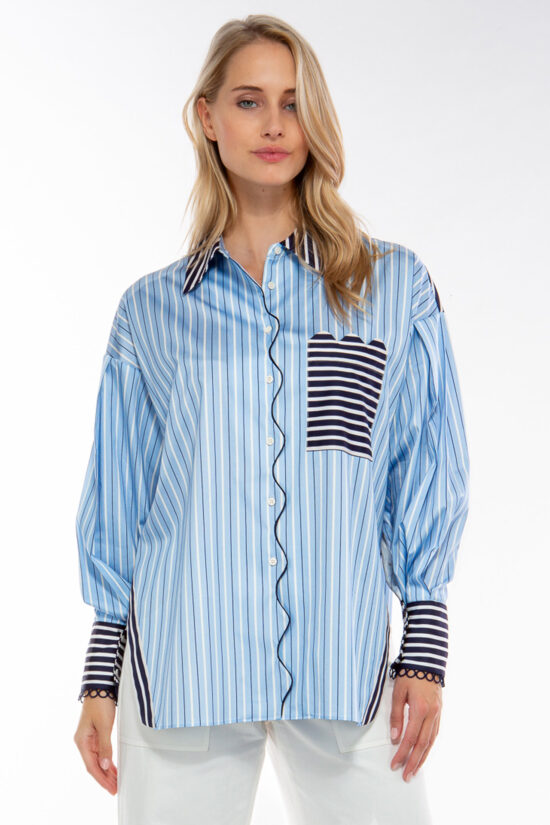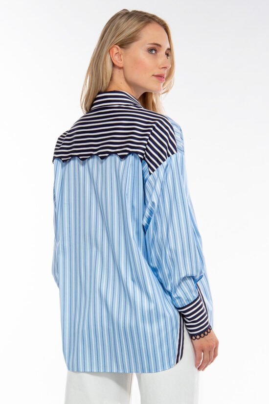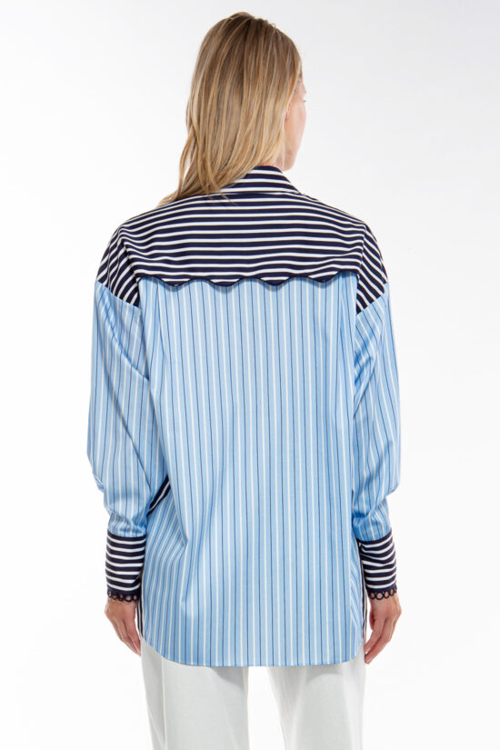 Hemdbluse aus Baumwoll-Popeline mit transparentem Spitzen-Einsatz entlang Schulter und Ärmel.