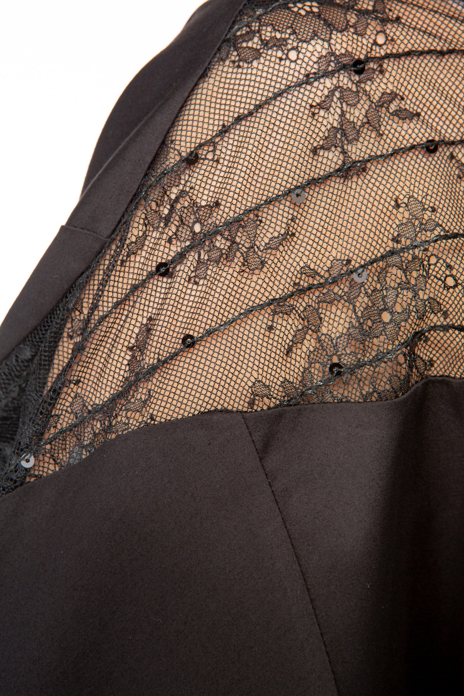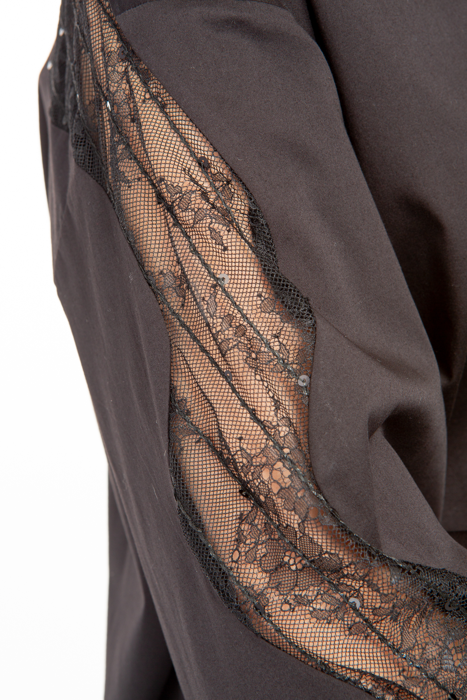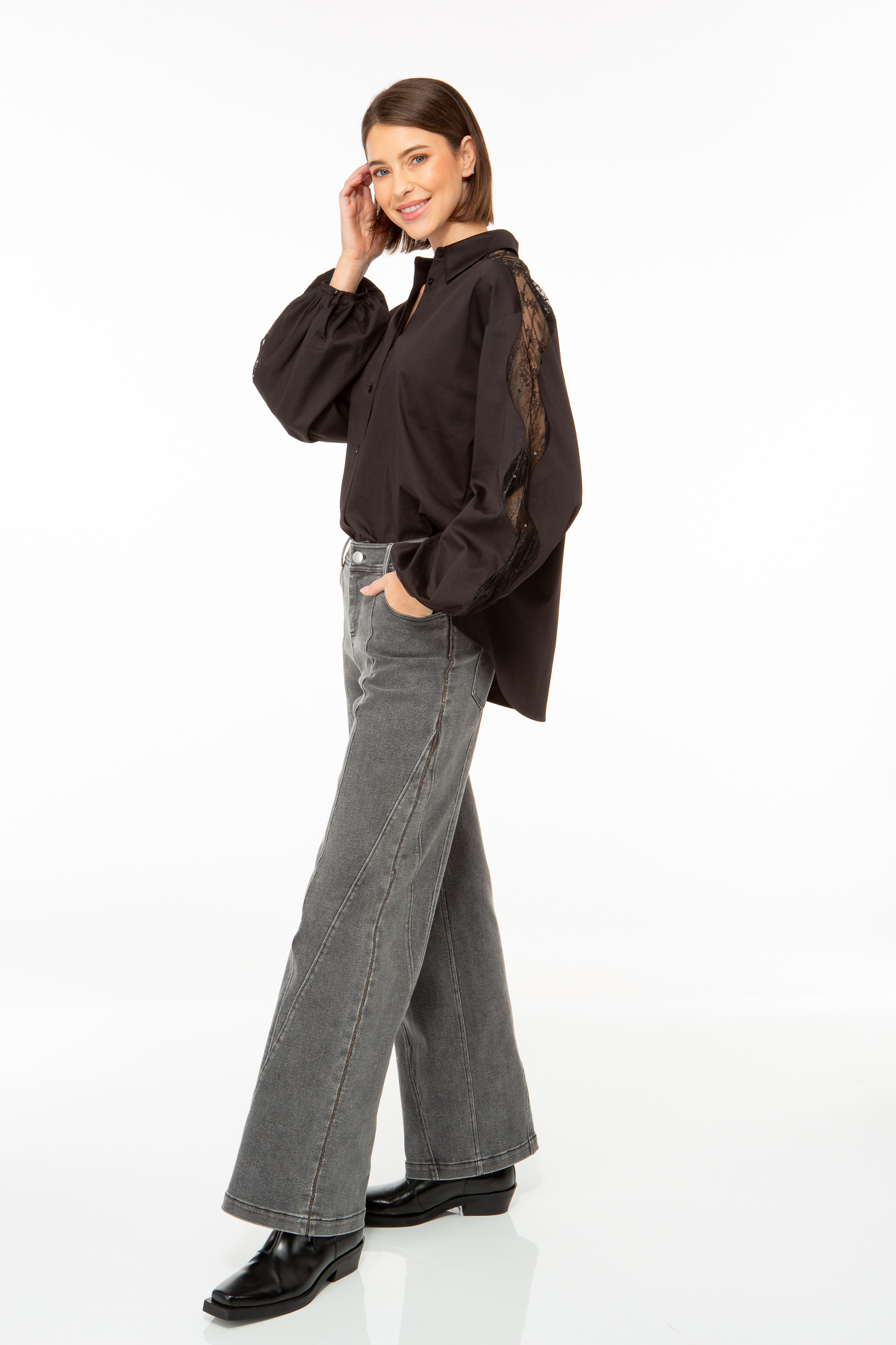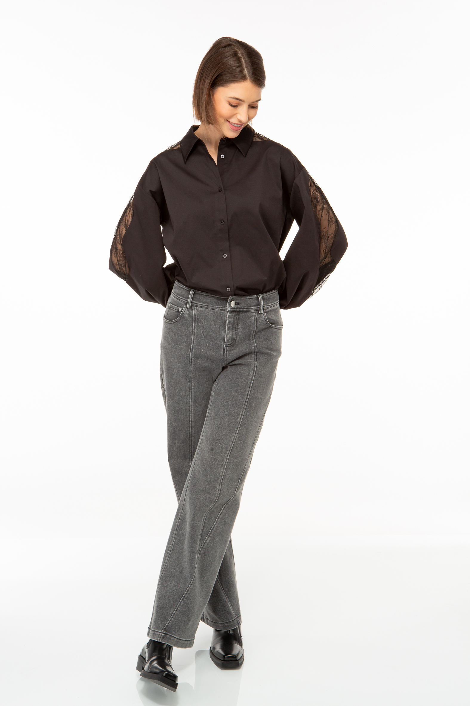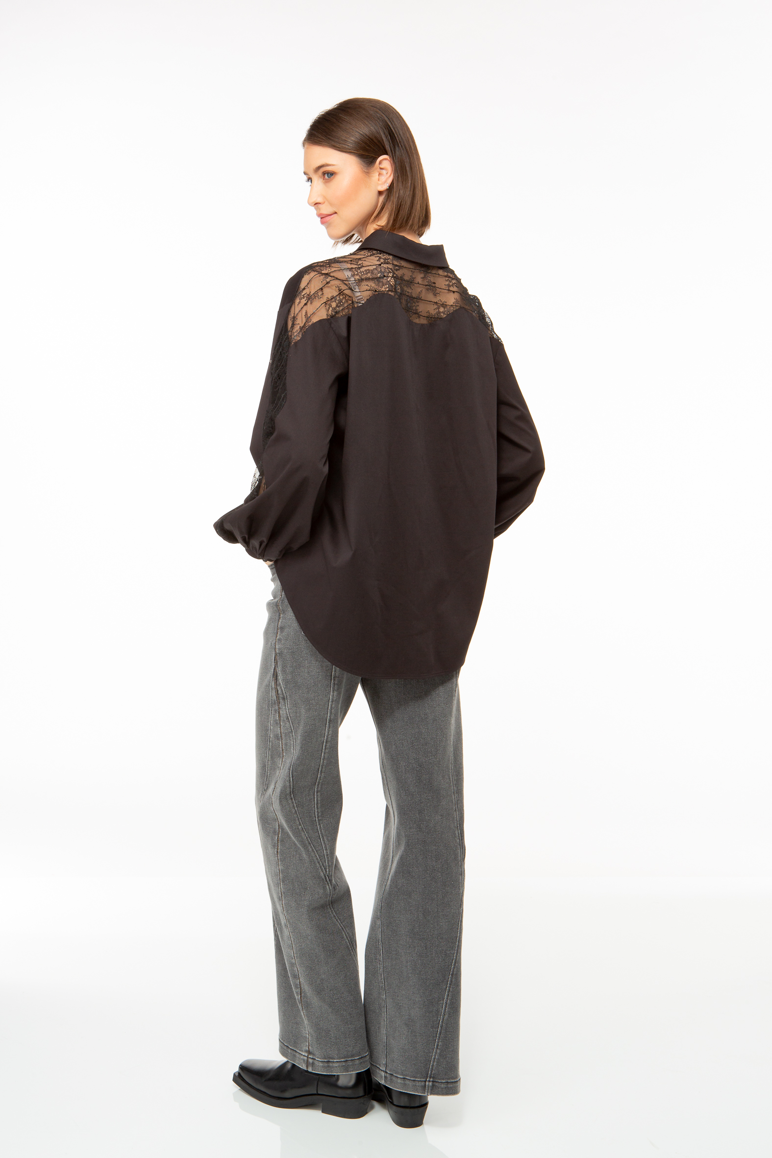 Hemdbluse aus Baumwoll-Popeline mit transparentem Spitzen-Einsatz entlang Schulter und Ärmel.
