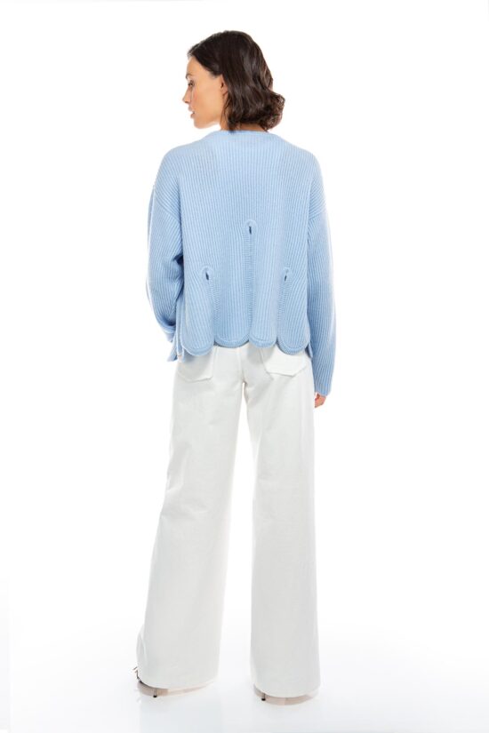 - elastischer Hosenbund mit Knopf und Reißverschluss