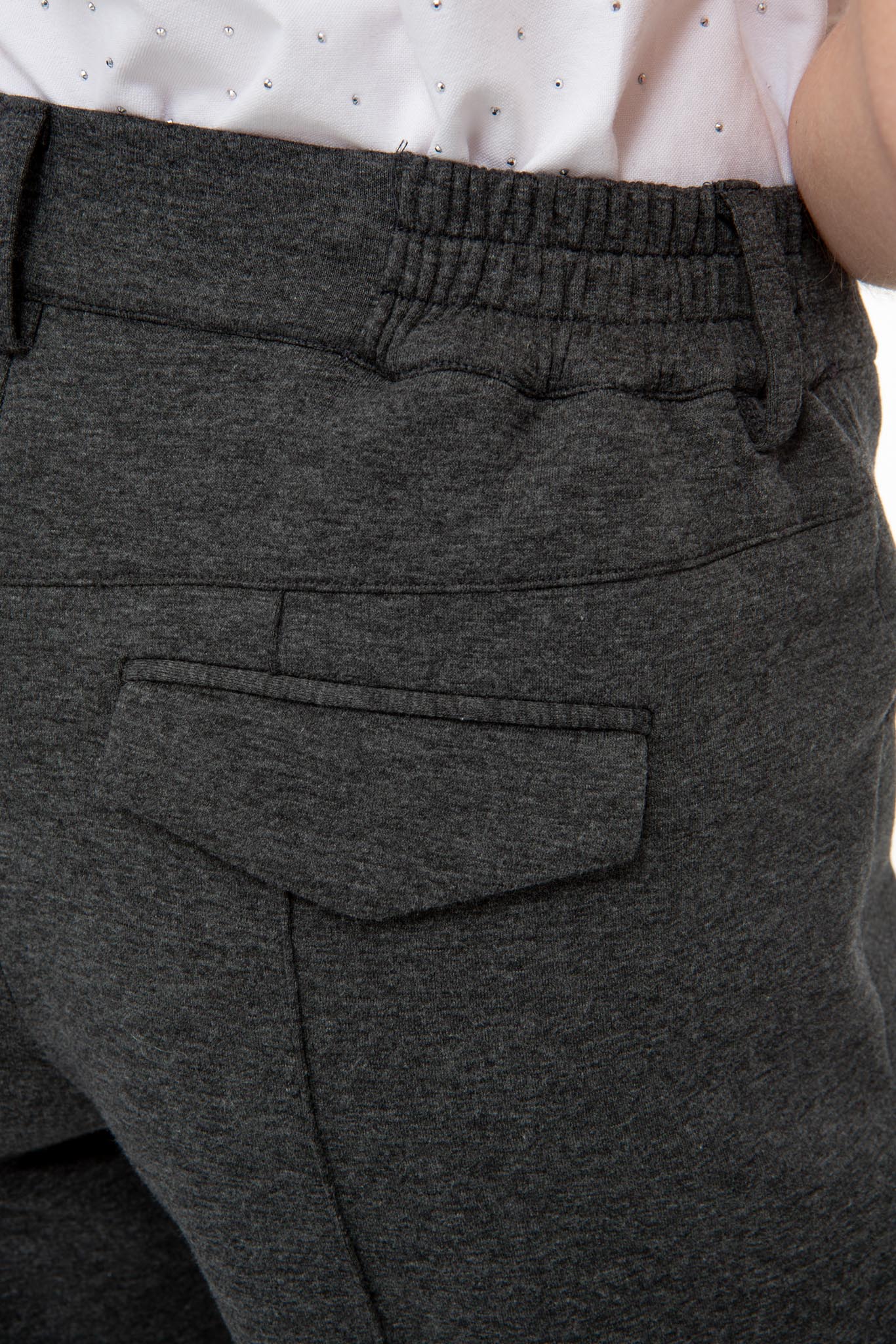- elastischer Hosenbund mit Knopf und Reißverschluss