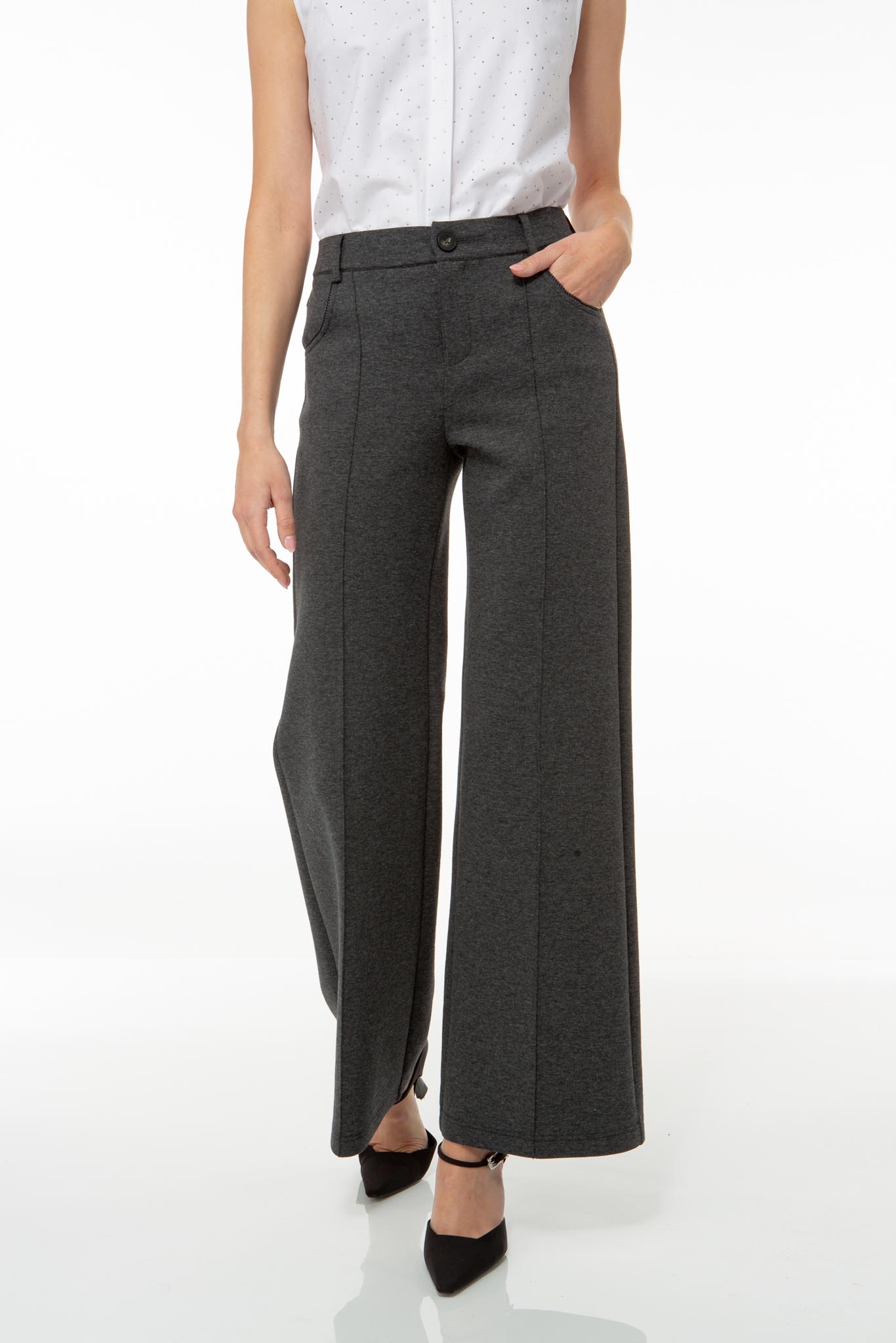 Die fein abgesteppte Bügelfalte setzt eine schöne Betonung in der schlichten Silhouette und streckt das Bein optisch.