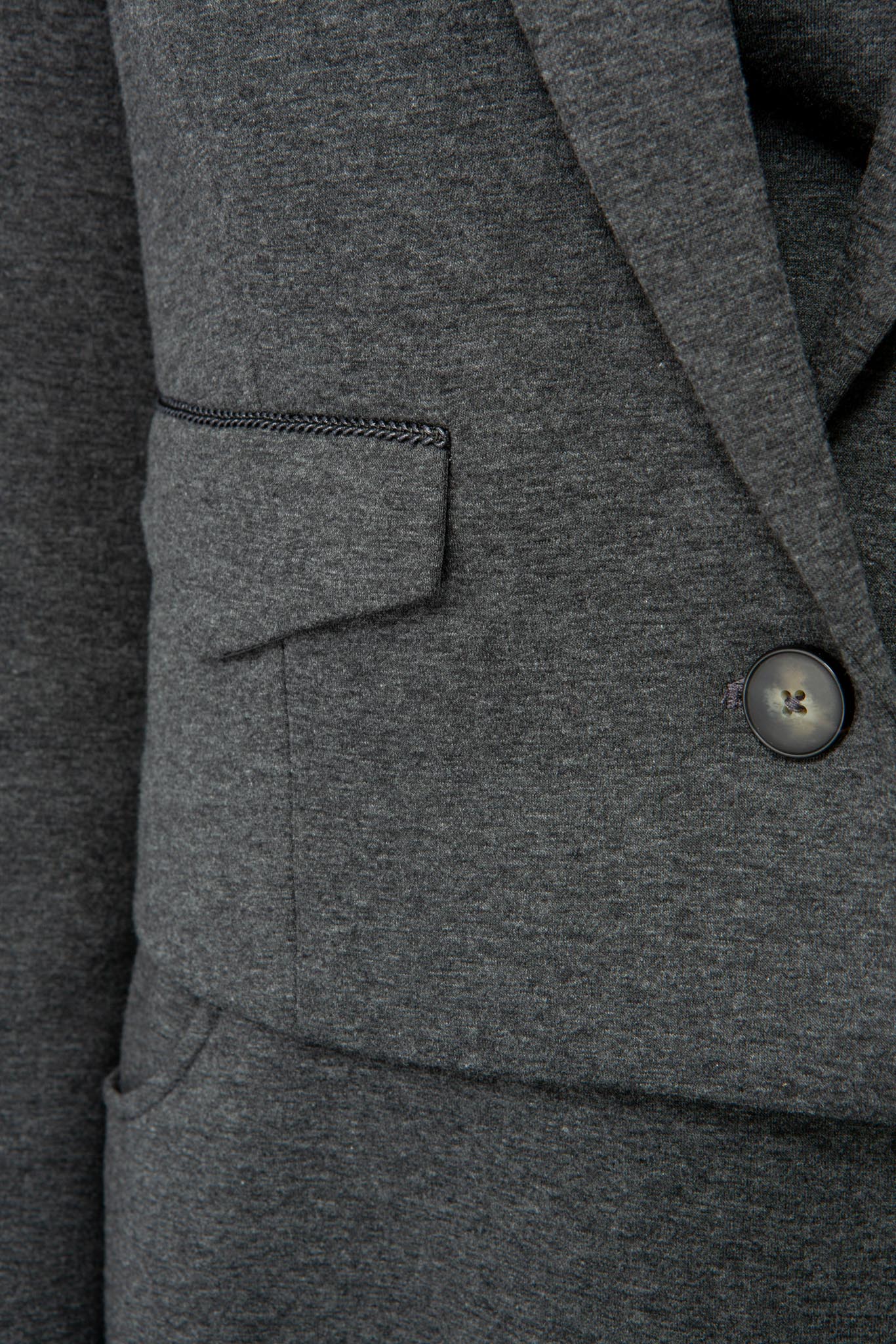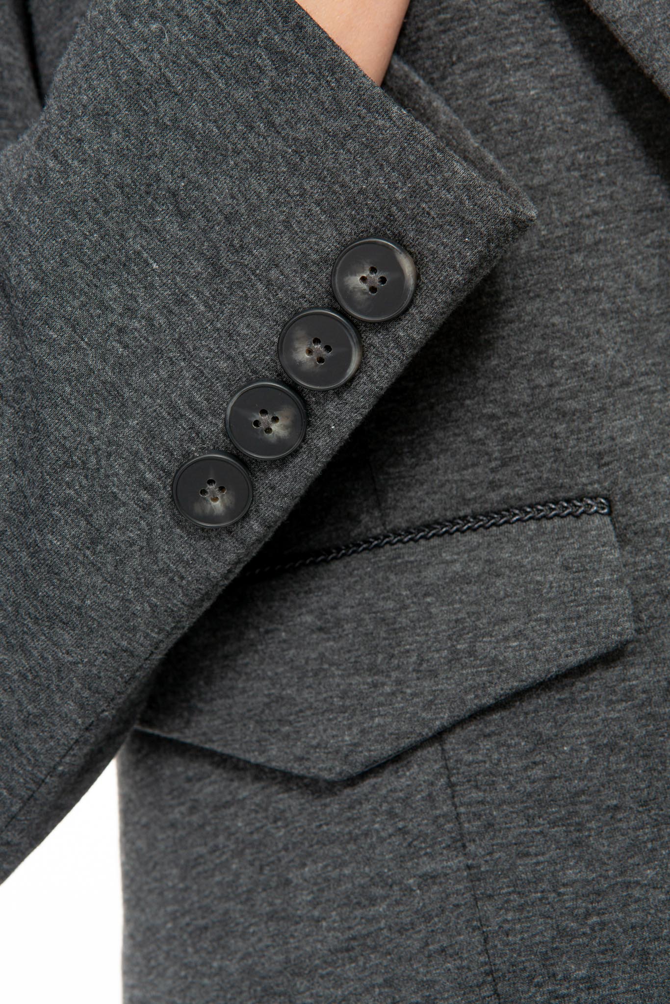 Der Blazer hat Hornlook Knöpfe, feine geflochtene Zierlitzen und einen Riegel im Rücken.