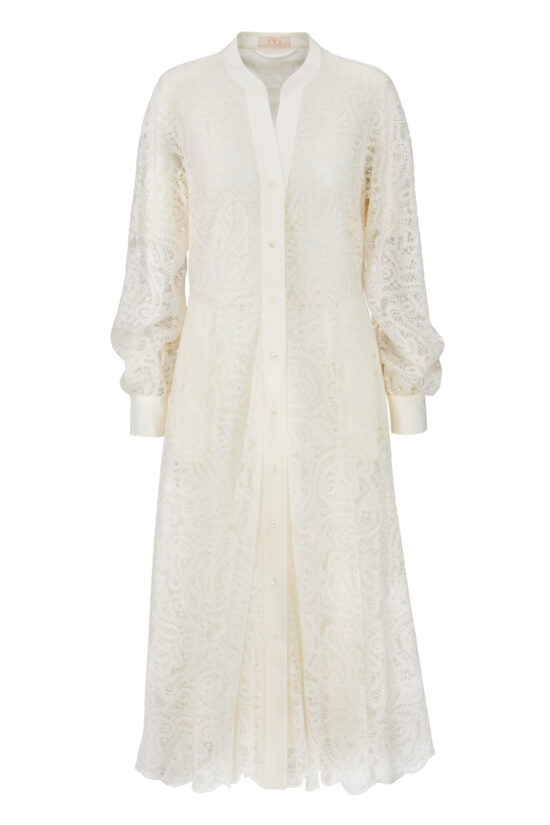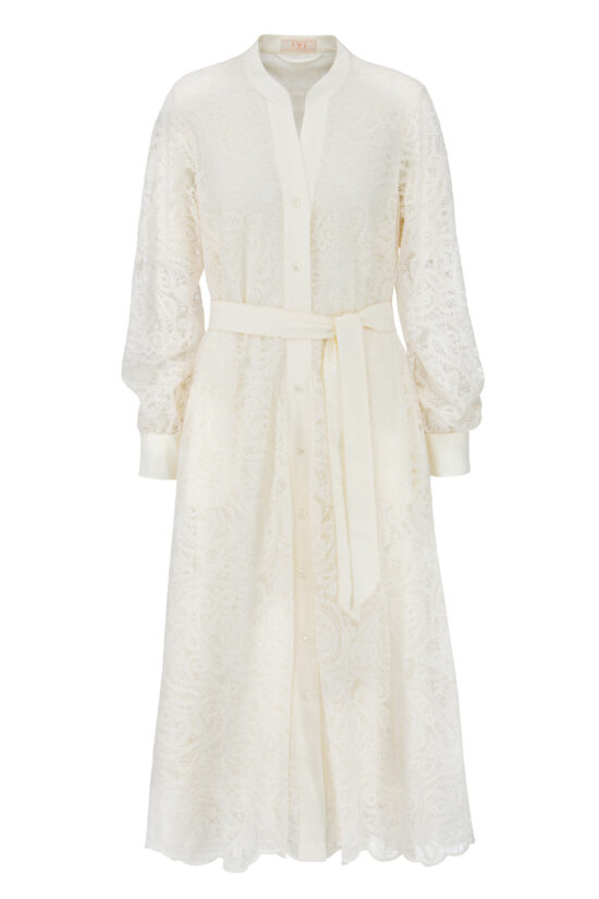 Das lässige Kleid hat einen hohen Rundhalsausschnitt, überschnittene Schultern und voluminöse Ärmel. Die abnehmbare Strass-Brosche verleiht ein Luxury-Finish!