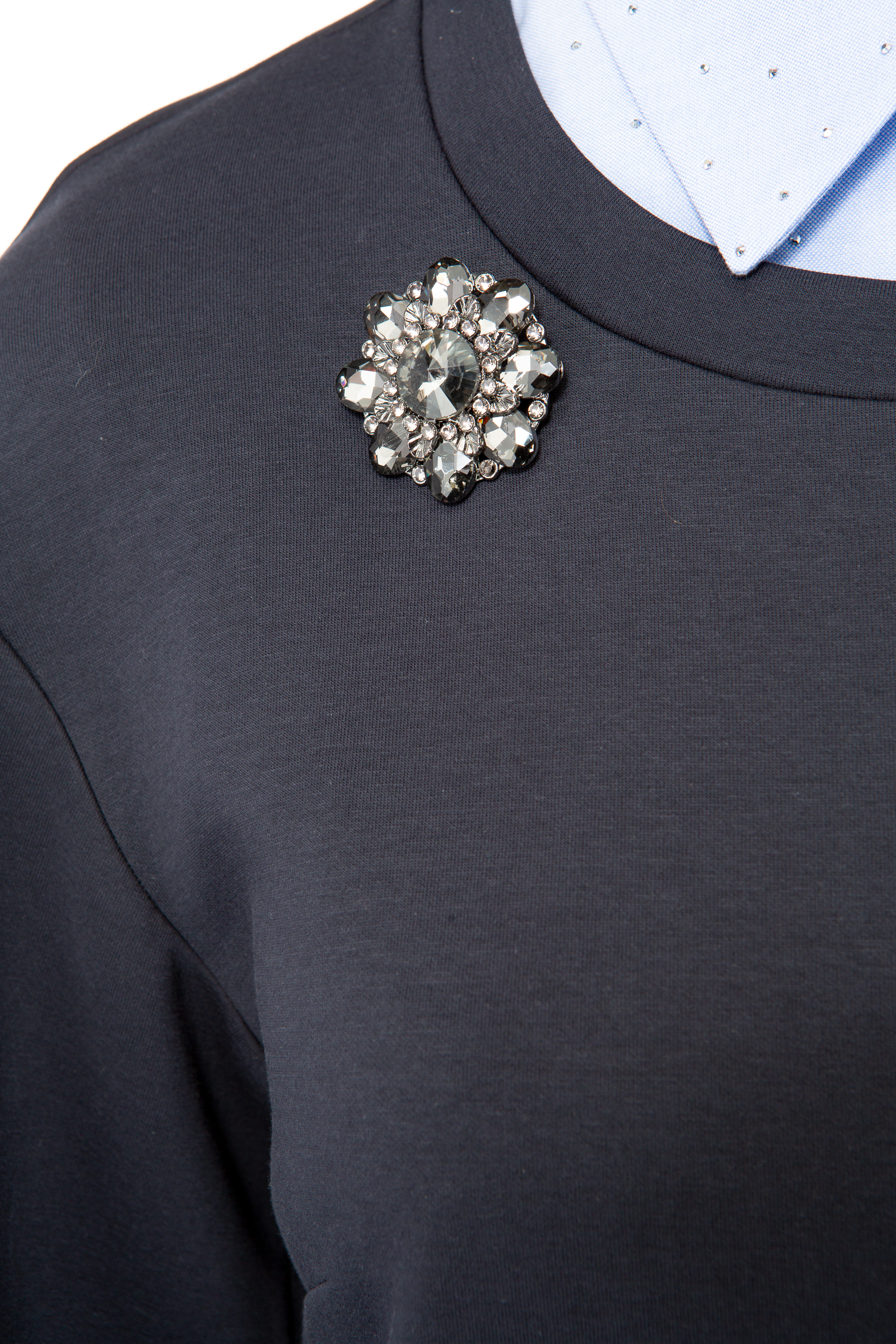 Das lässige Kleid hat einen hohen Rundhalsausschnitt, überschnittene Schultern und voluminöse Ärmel. Die abnehmbare Strass-Brosche verleiht ein Luxury-Finish!