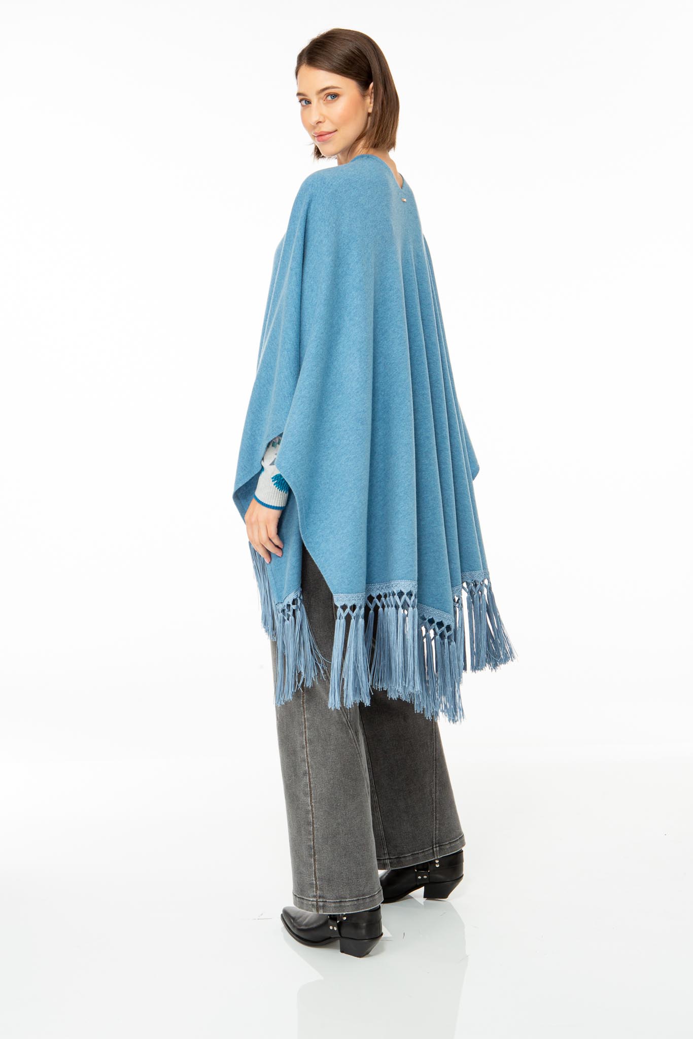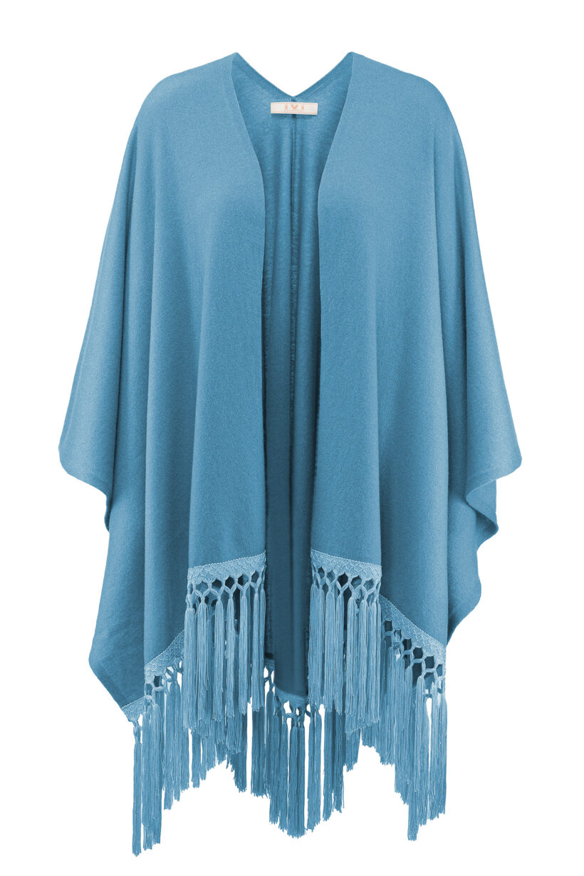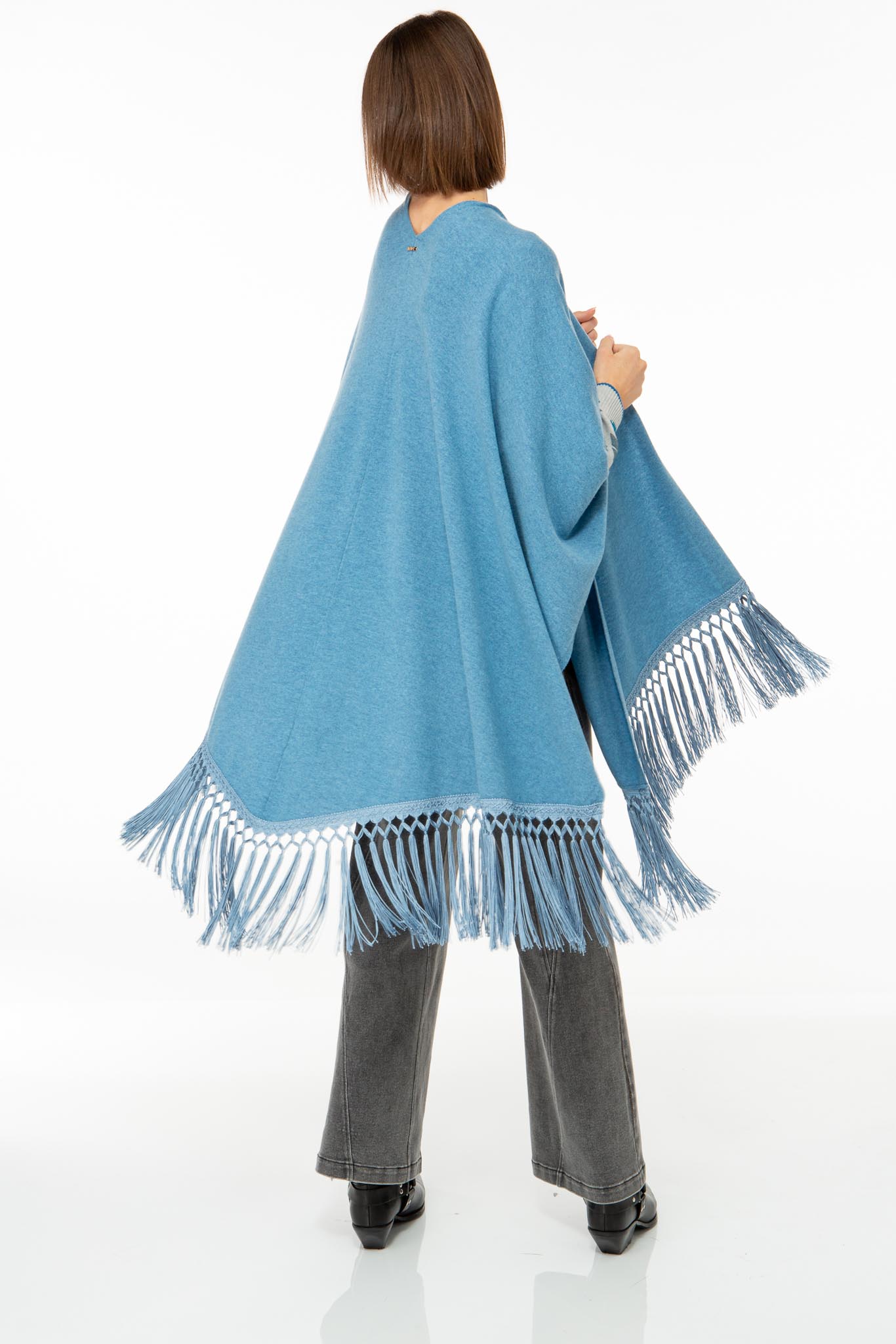 Lässiges Cape aus weichem Merino Strick mit edler Fransen Bordüre am Saum.