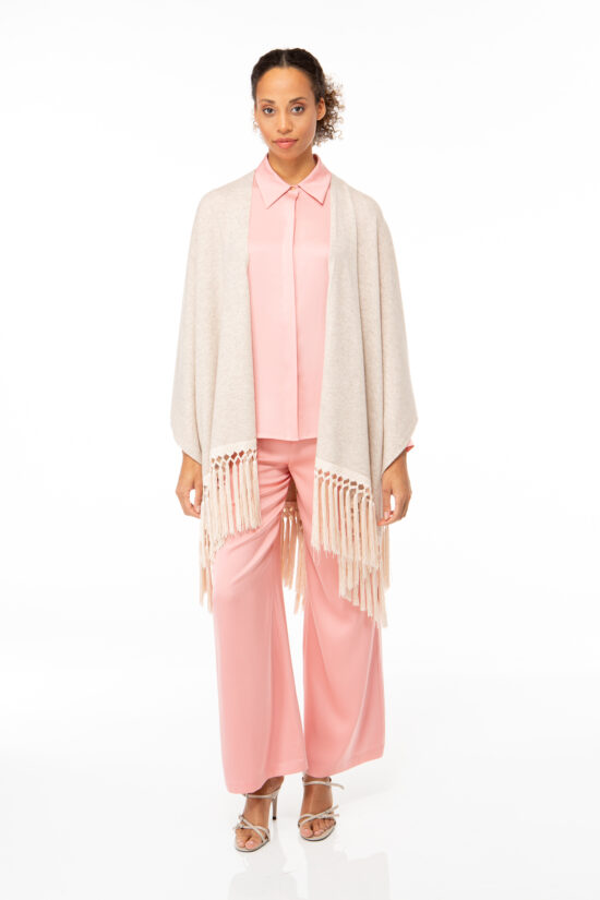 Lässiges Cape aus weichem Merino Strick mit edler Fransen Bordüre am Saum.