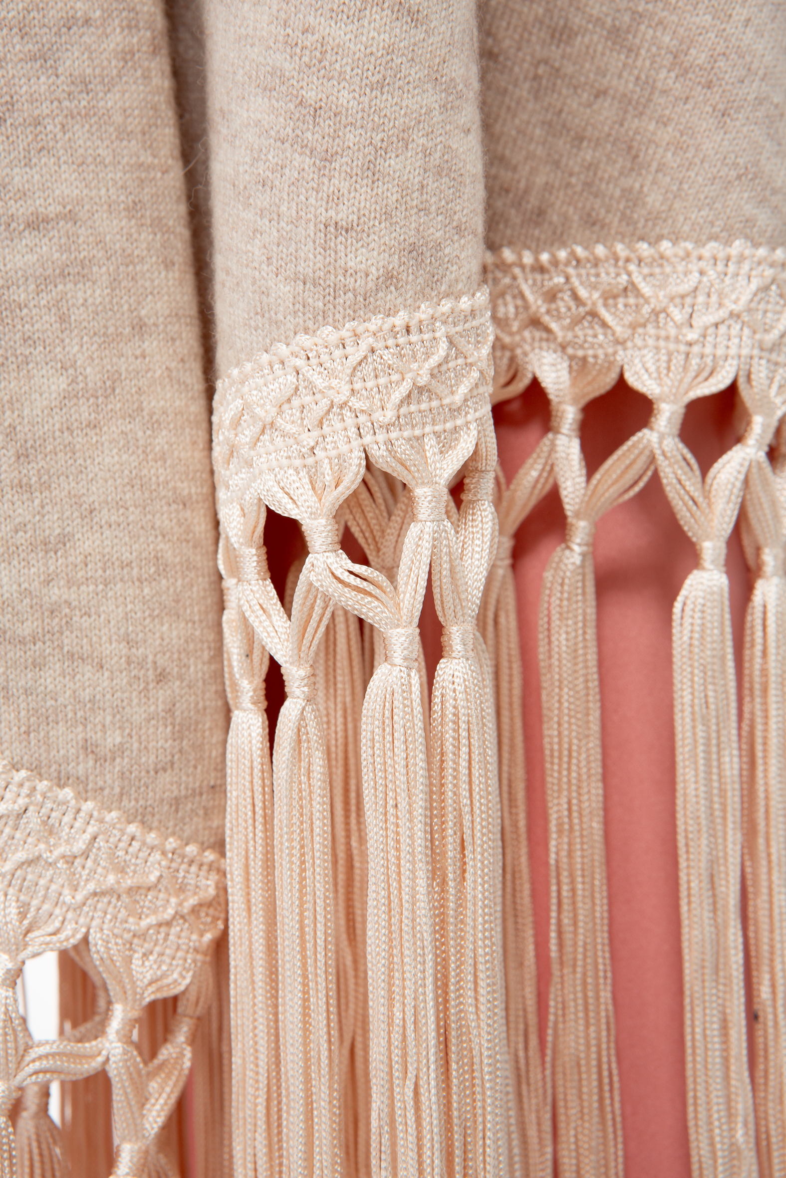 Lässiges Cape aus weichem Merino Strick mit edler Fransen Bordüre am Saum.