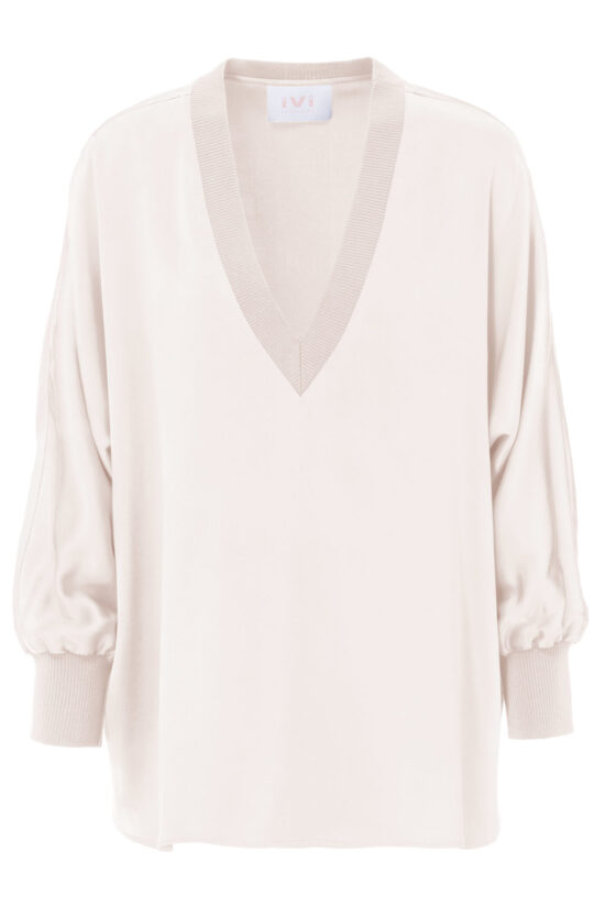- V-Ausschnitt mit eingesetzter schwarzer Spitzenkante