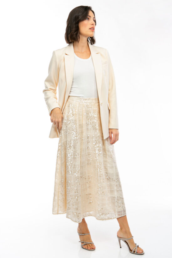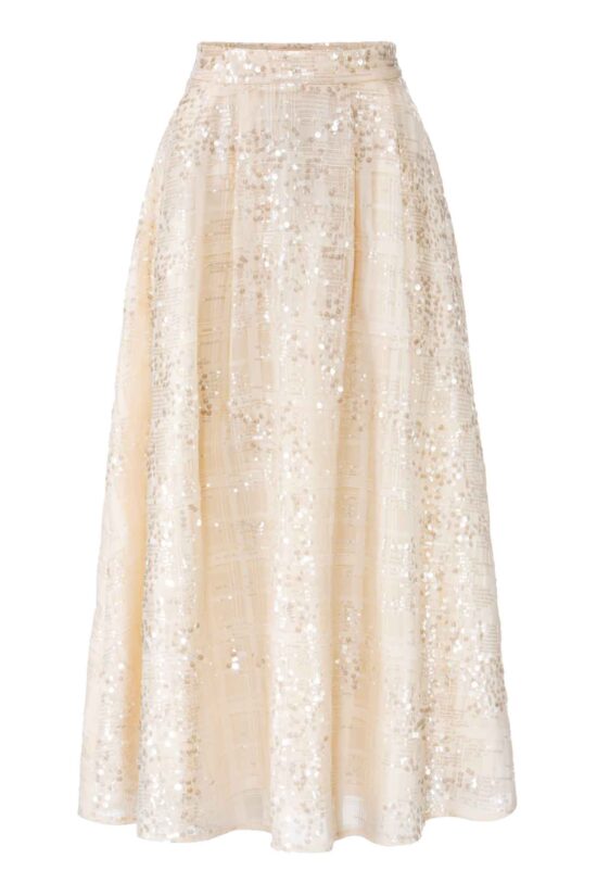 Dieser Midi-Rock aus hochwertiger Seide betont geschickt die feminine Silhouette und verleiht einen edlen Look und schlichte Eleganz.