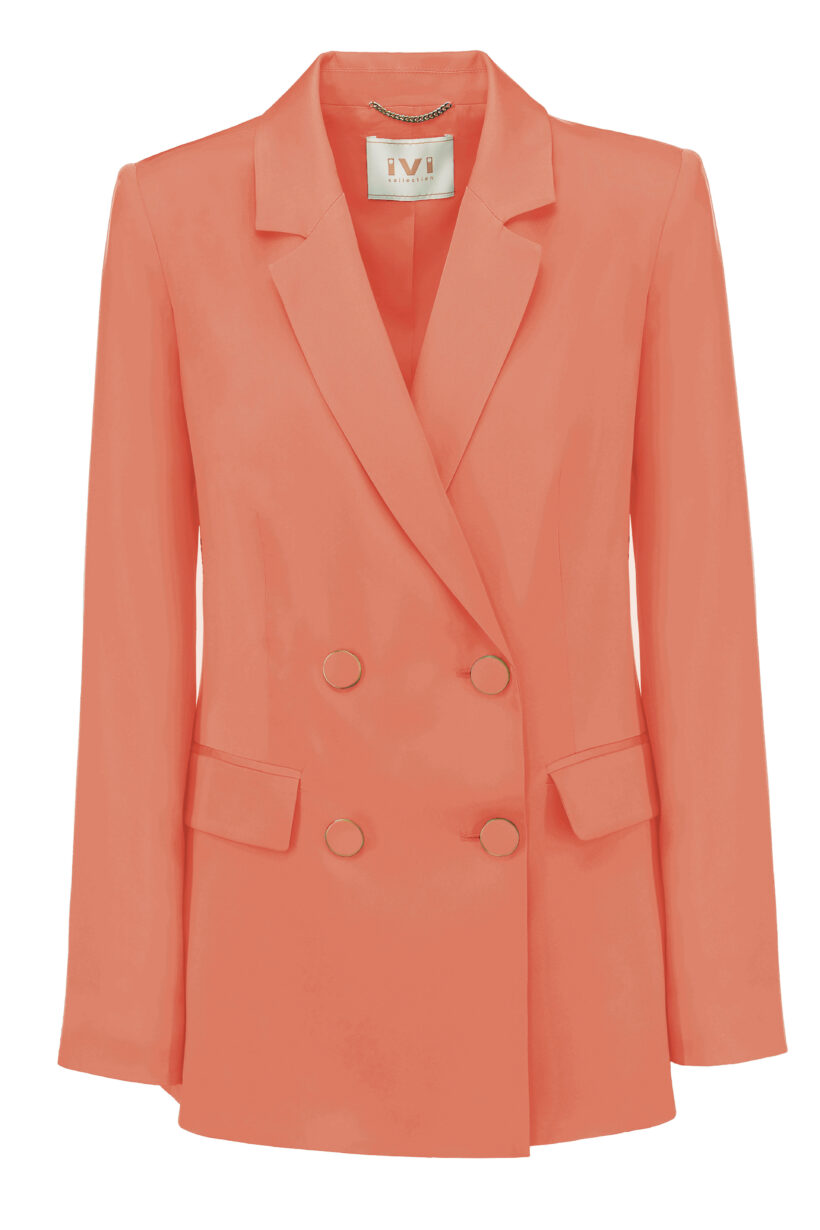 Doppelreihiger Blazer mit klassischem Revers aus hochwertiger Seide in einem sommerlichen Pfirsichton.