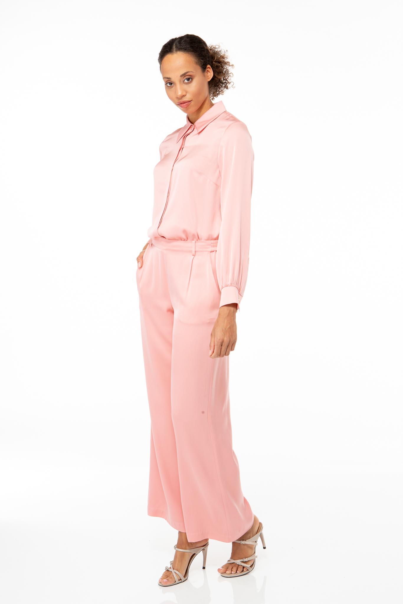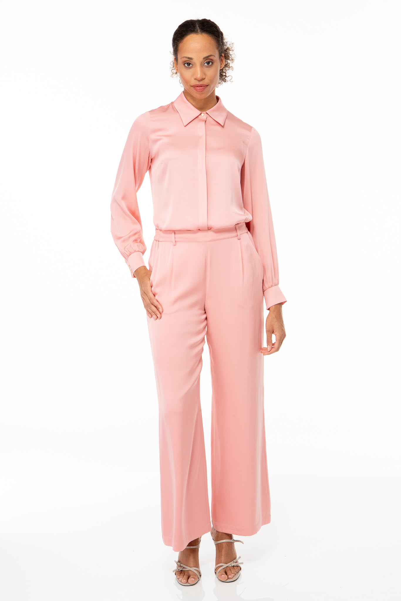 Seidenhose mit geradem, weitem Bein und feiner Bundfalte.