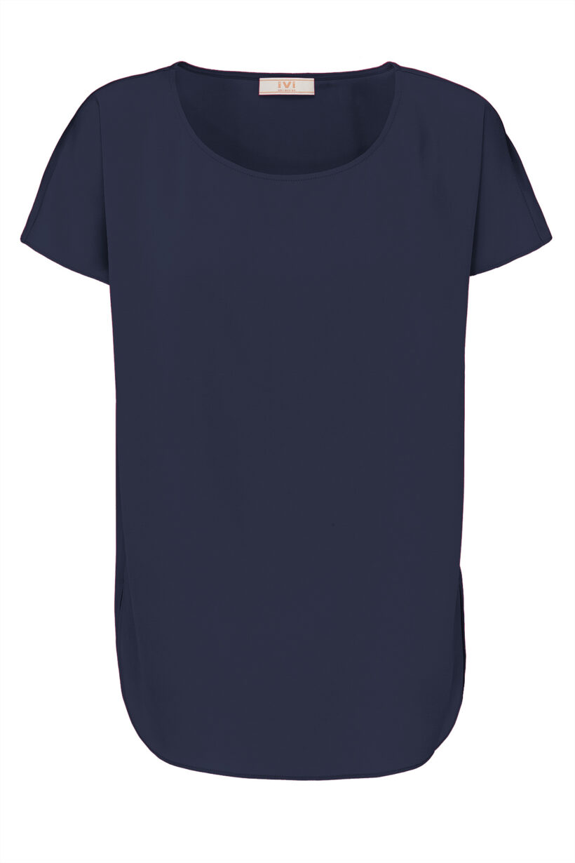 Der gerundete Saumverlauf mit seitlichen Schlitzen unterstreicht den unkomplizierten Look.