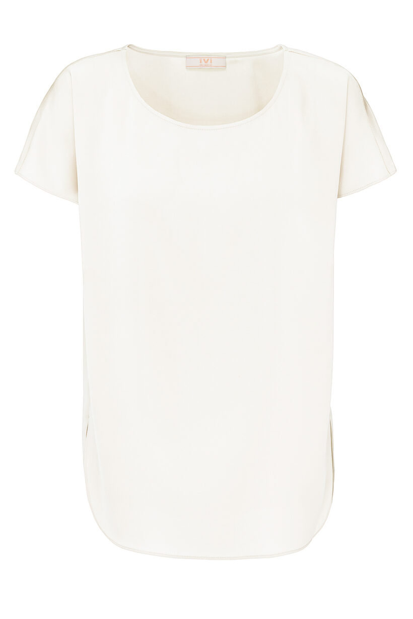 Seidenshirt in lässiger Silhouette mit kurzen überschnittenen Ärmeln und Rundhalsausschnitt.
