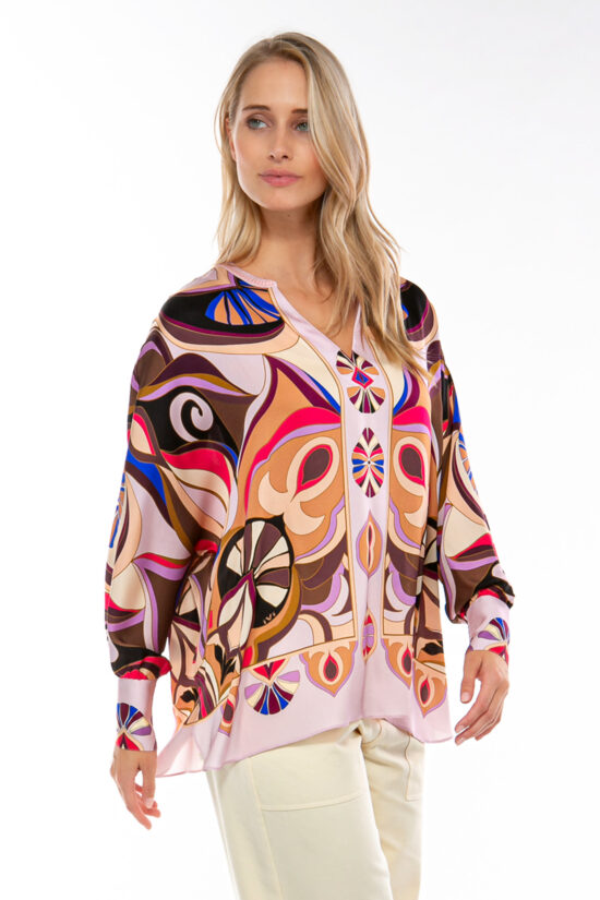 SOLID SILK Tunika im Hemdblusen-Look peach