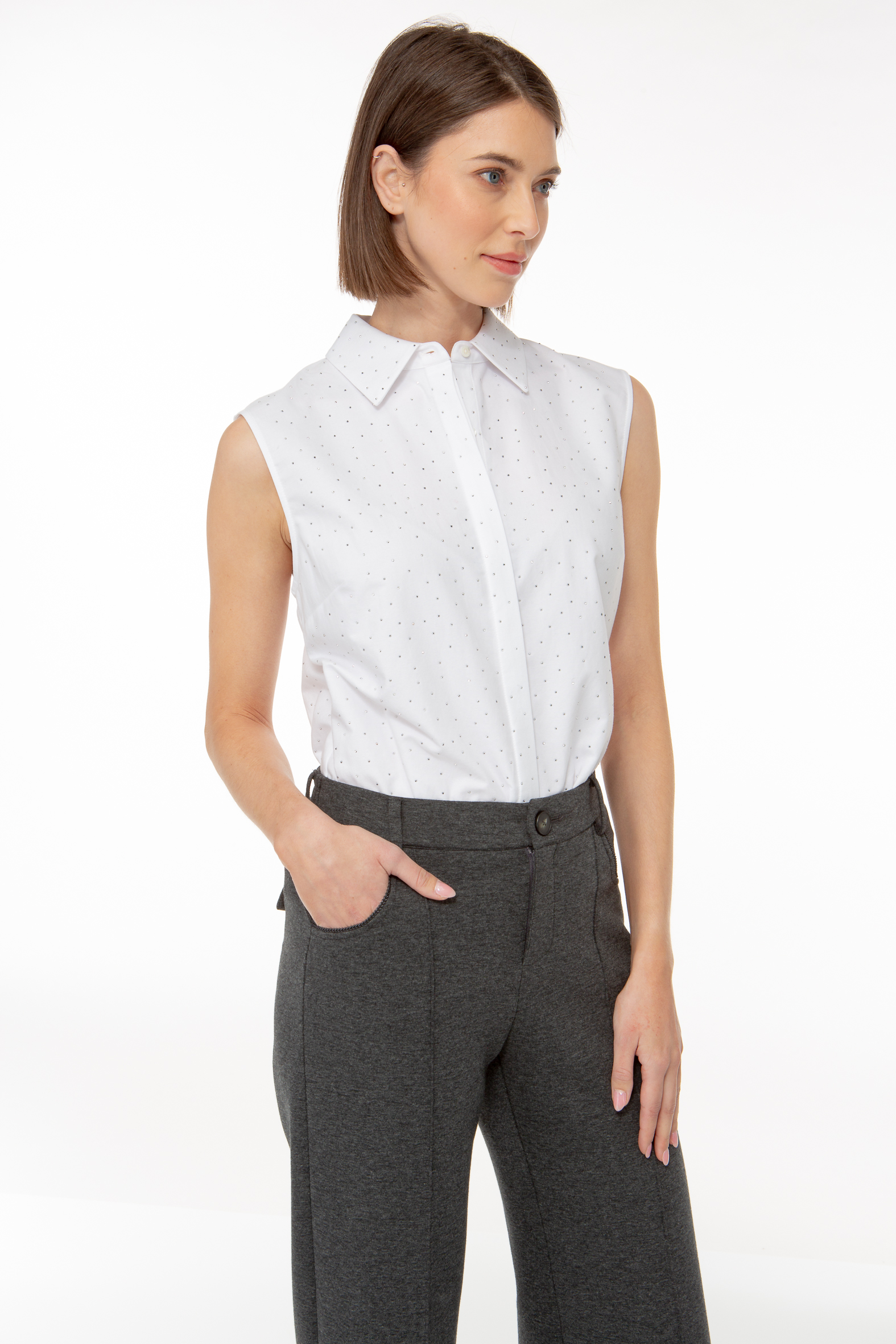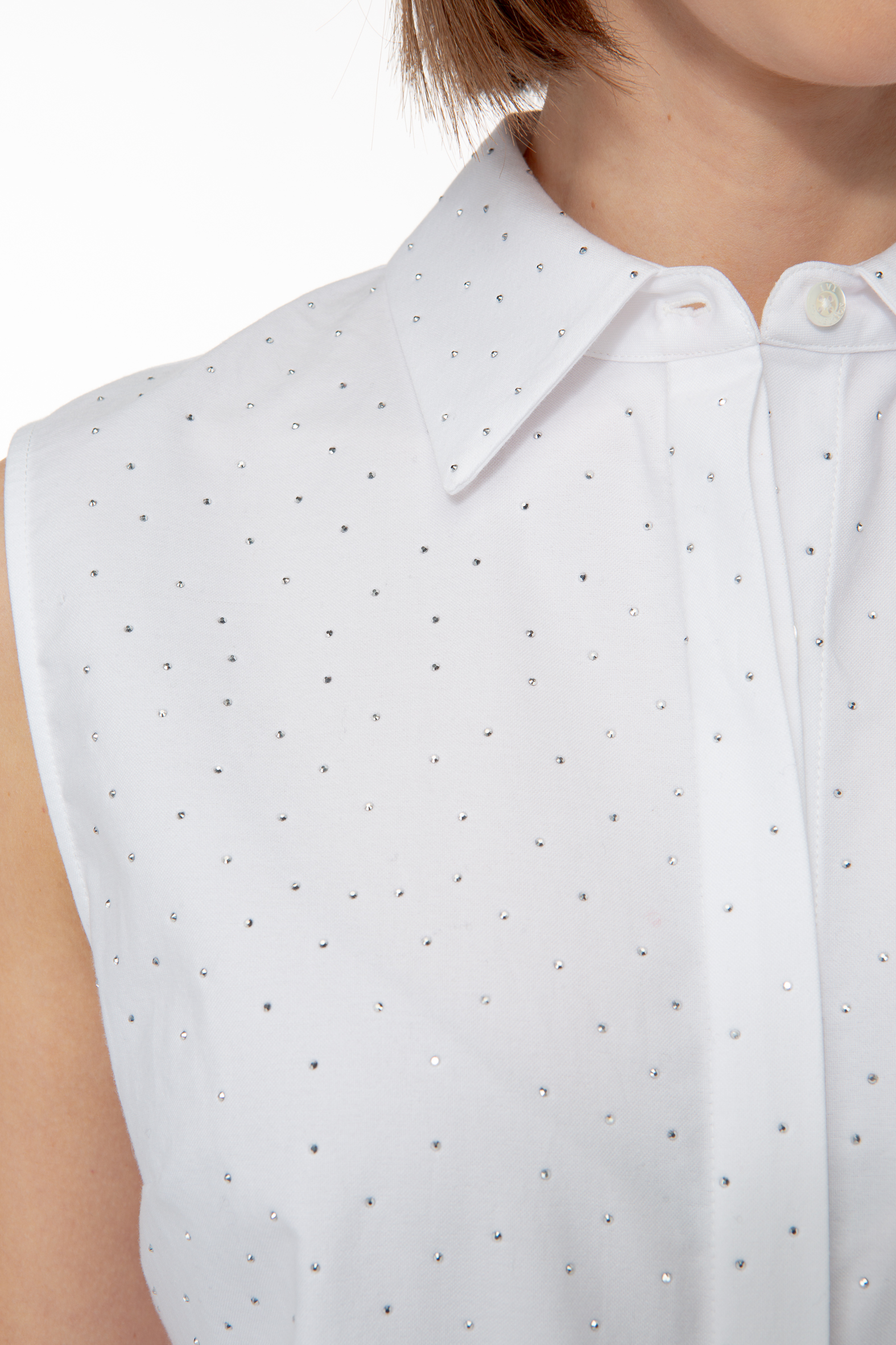 Ärmellose Bluse mit verdeckter Knopfleiste und klassischem Hemdkragen aus Baumwoll-Popeline.