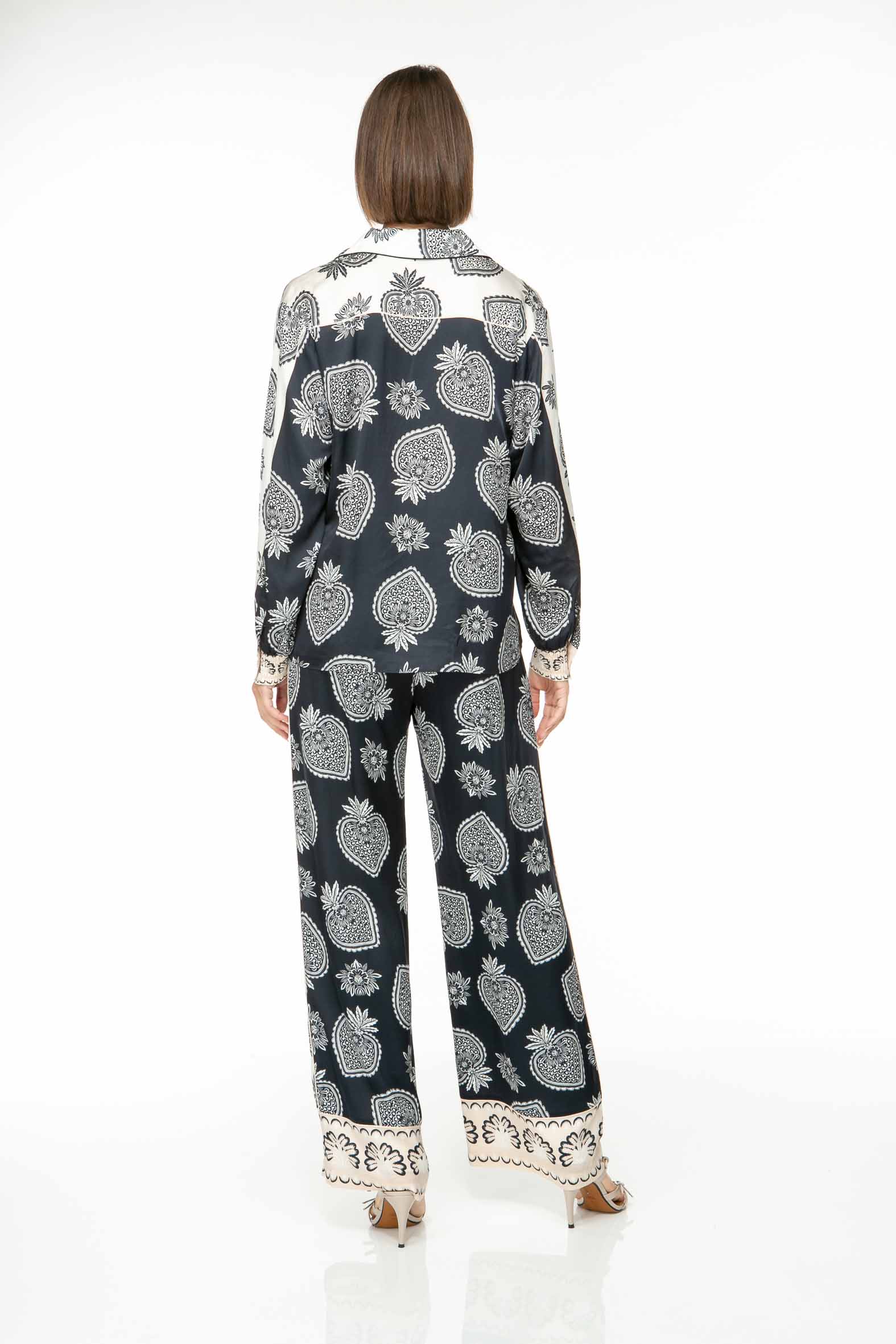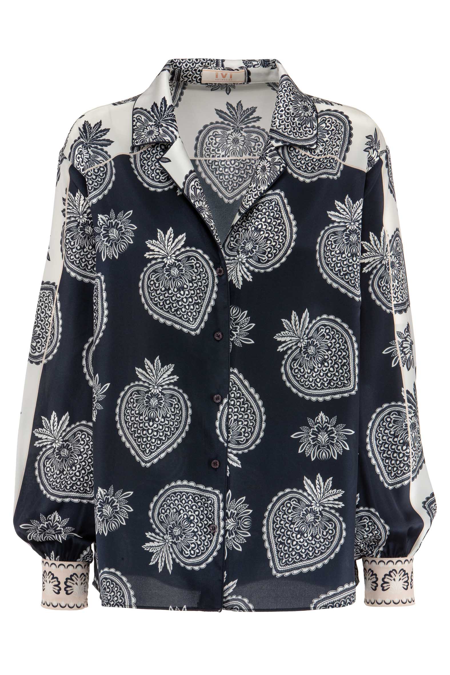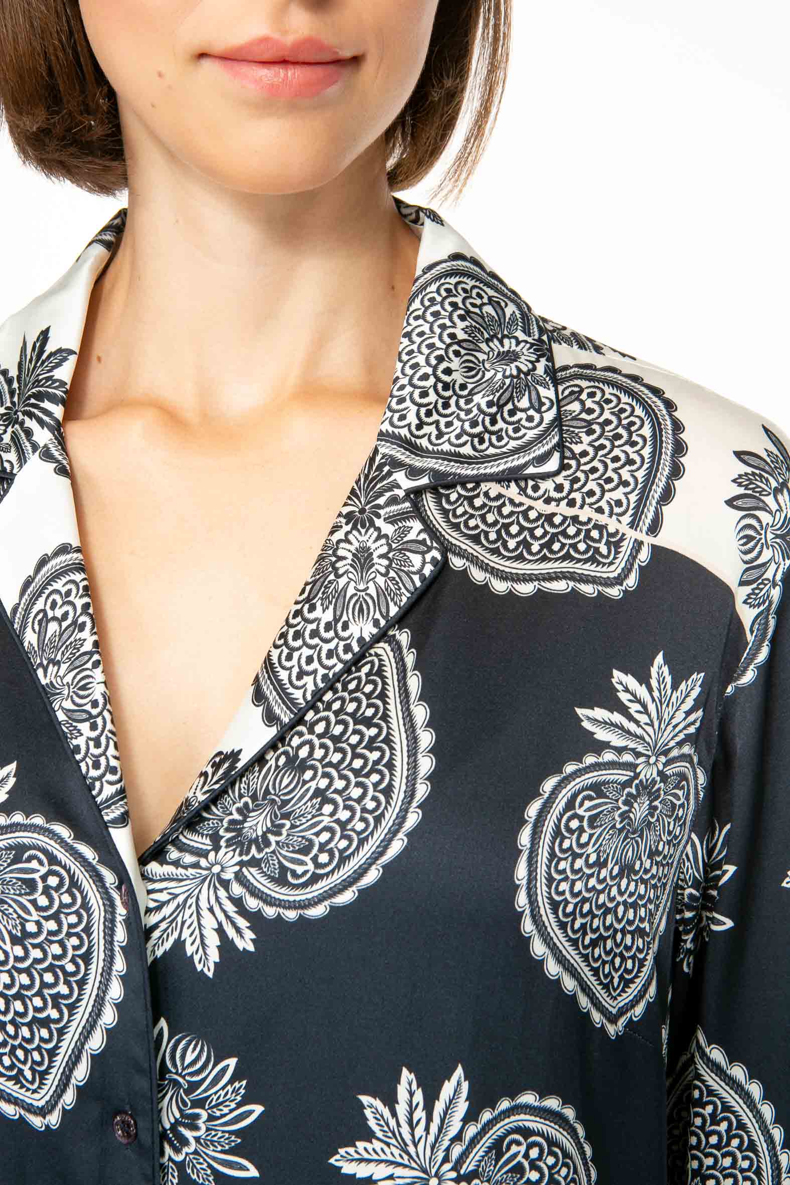 Hemdbluse aus glänzendem Viskose-Seide-Mix mit Print im Colorblock.