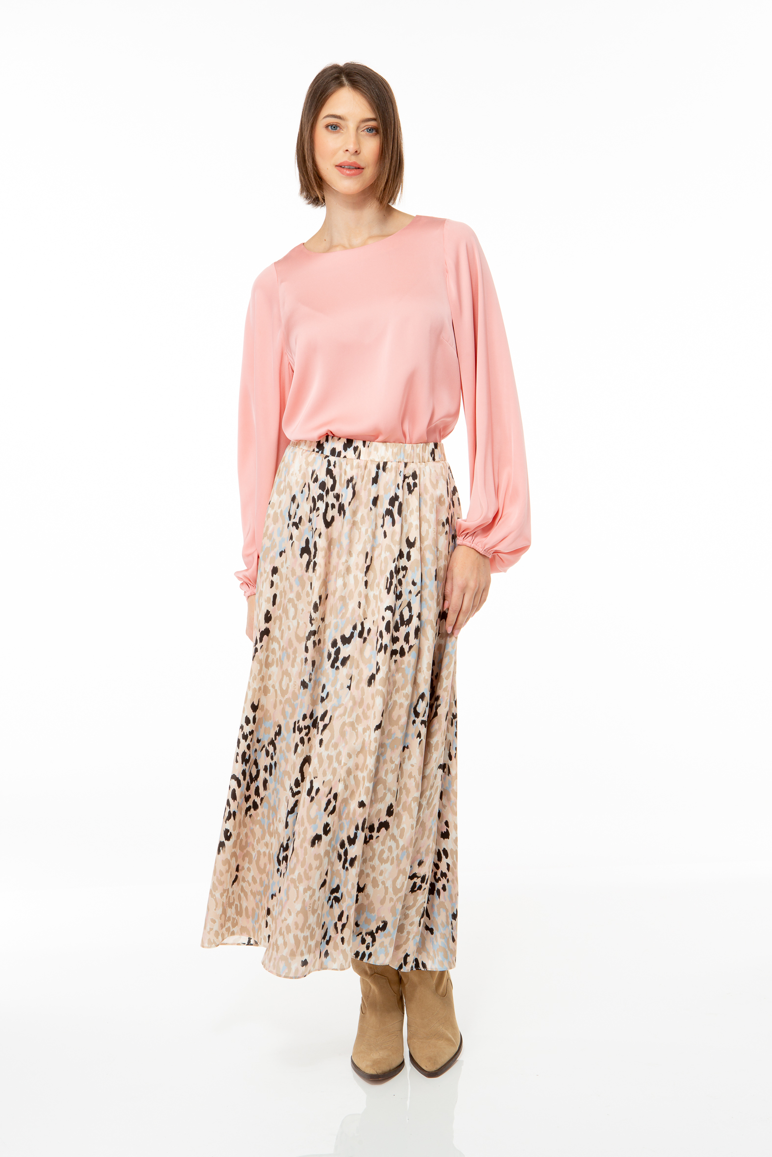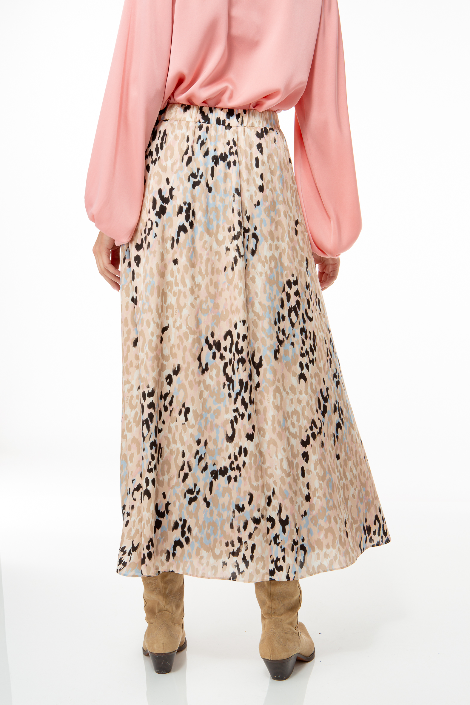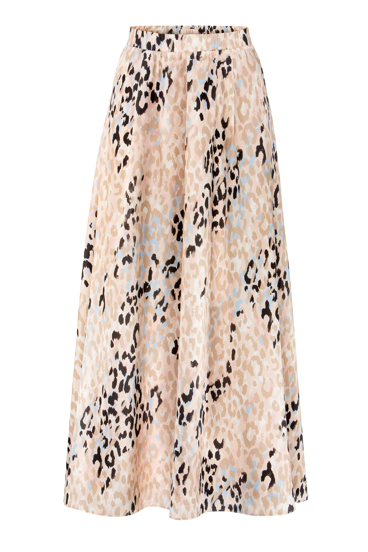 Schwingender Rock in Midilänge aus hochwertigem Viskose-Seiden-Mix mit Leo Print in edler Farbgebung.
